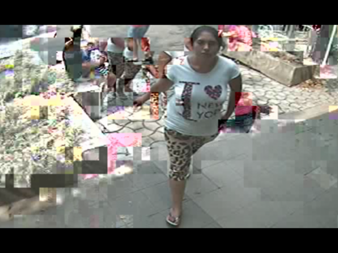 Femeia din imagini este bănuită de comiterea mai multor retrageri frauduloase de bani din bancomate prin folosirea fără drept a unui card furat. Persoanele care pot oferi informații despre persoana din fotografii sunt rugate să contacteze cea mai apropiată unitate de poliție.