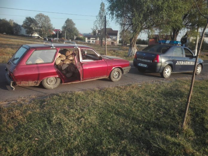 Jandarmii au prins un individ cu mașina ”ochi” de lemne furate