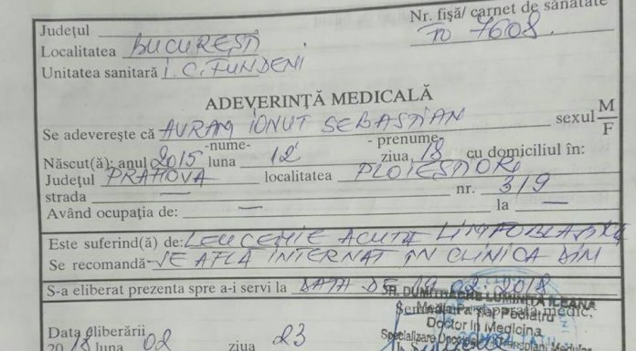 Am ales să nu pun o poză cu el pe facebook dar voi pune în comment adeverința medicală din care reiese diagnosticul primit.