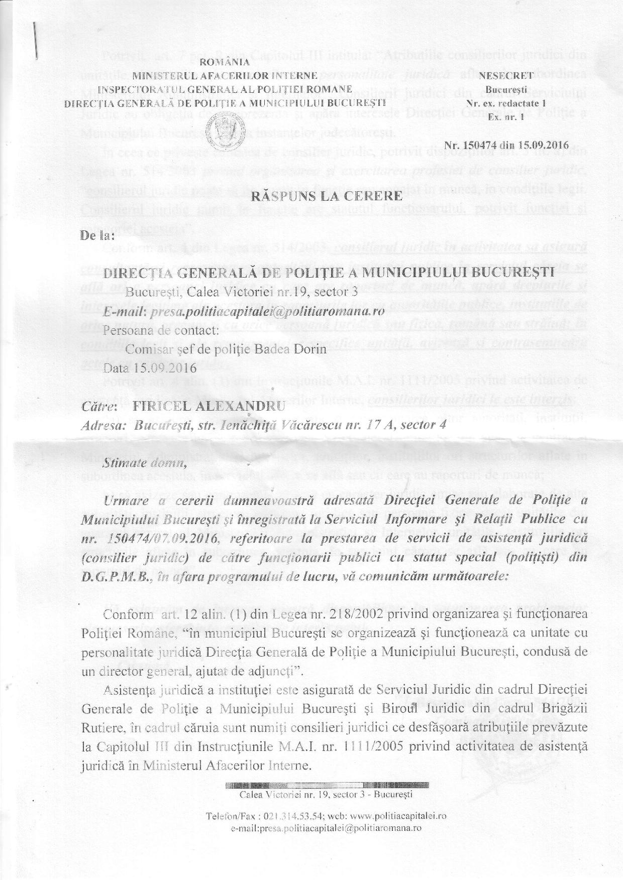 Așadar, falșii polițiști din Aparatul central al M.A.I. respectiv structurile suport ale D.G.P.M.B. au toate motivele să nu răspundă solicitării: doar fură, la propriu, banii statului Român pentru a menține în funcții de poliție indivizi care nu îndeplinesc aceste atribuții.