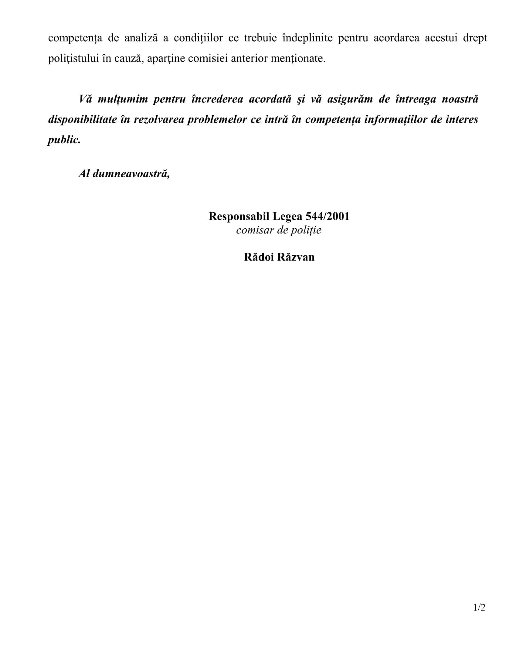 În concluzie, trebuie ca polițiștii „din stradă” și „din frontieră” să își cunoască și să aibe curajul să își ceară drepturile (precum dreptul la asistență judiciară plătită) altfel, vor menține actualul climat de sclavie (ba chiar îl vor adânci) în care „se scaldă” în prezent. (Cerasela N.).
