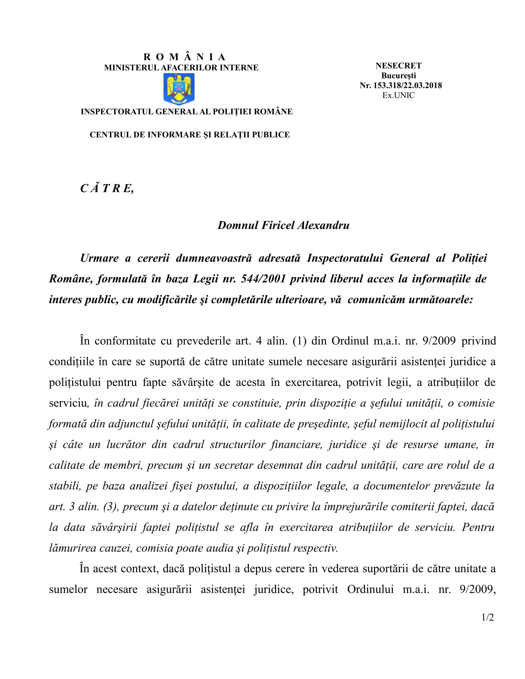 [1] Articolul 28(1) Polițistul are dreptul la: o) suportarea de către unitate a sumelor necesare asigurării asistenței juridice a polițistului, pentru fapte săvârșite de acesta în exercitarea, potrivit legii, a atribuțiilor de serviciu, în condițiile stabilite prin ordin al ministrului afacerilor interne;