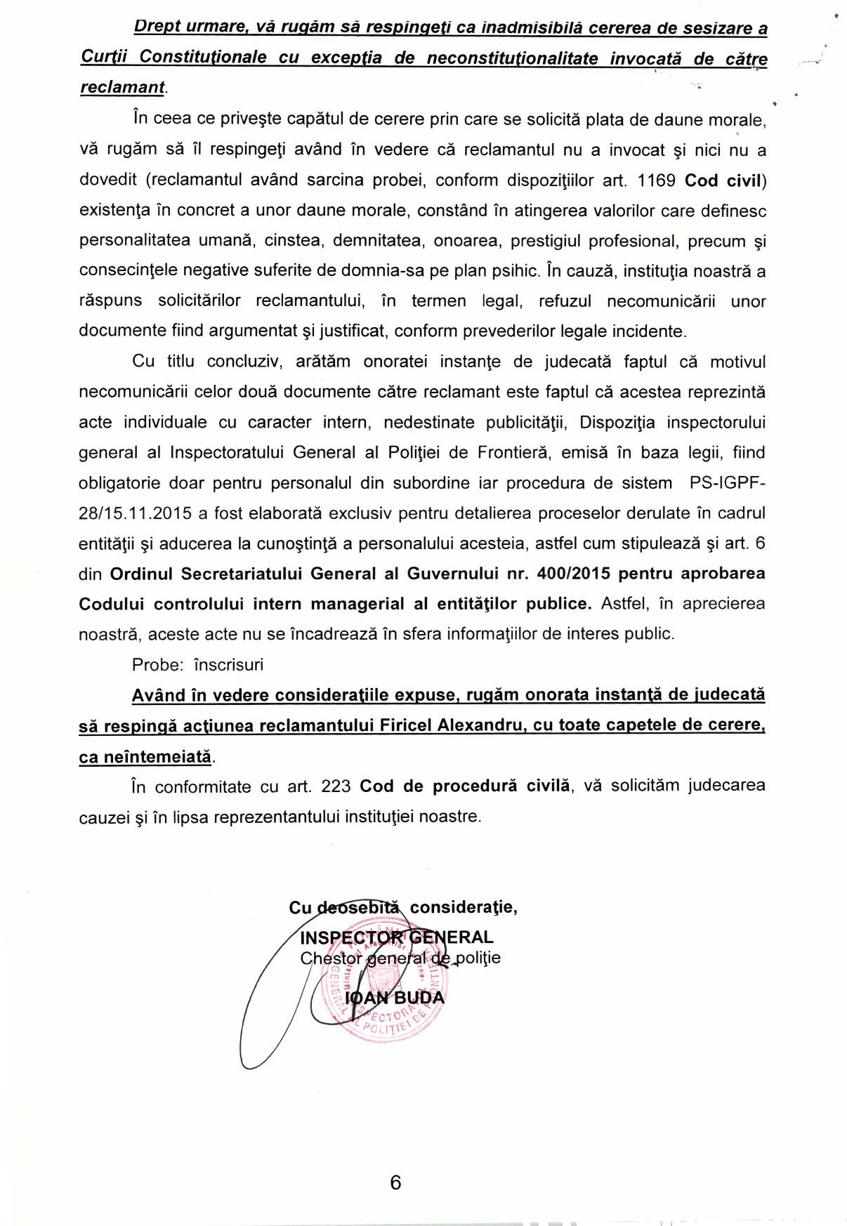 Cât despre întâmpinarea semnată de același Buda Ioan, pentru pârâta I.G.P.F.R (niciun „brav polițist de frontieră și consilier juridic” din compartimentul juridic al I.G.P.F.R. nu a vrut să semneze, de frica regimului incompatibilităților care sancționează actul emis de o asemenea persoană cu nulitatea absolută) este de tot râsul, și vă arătăm de ce: