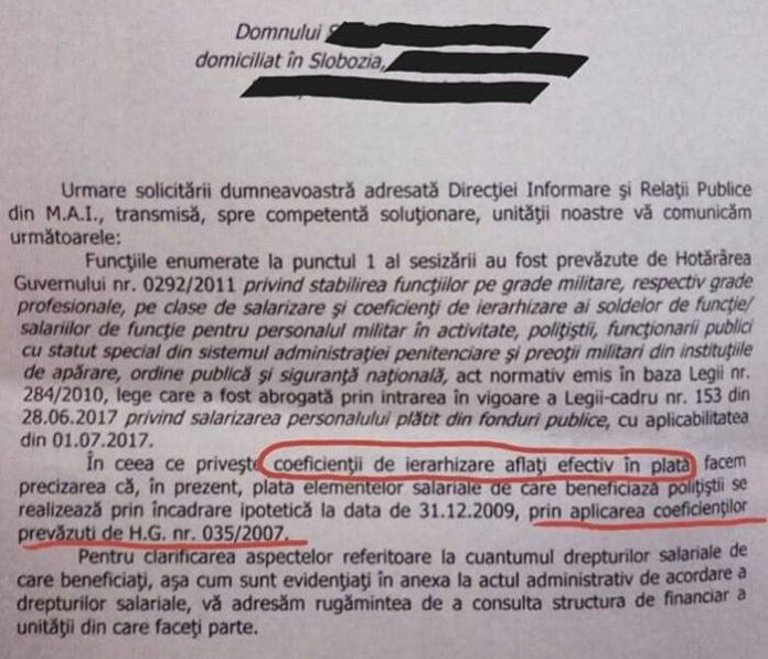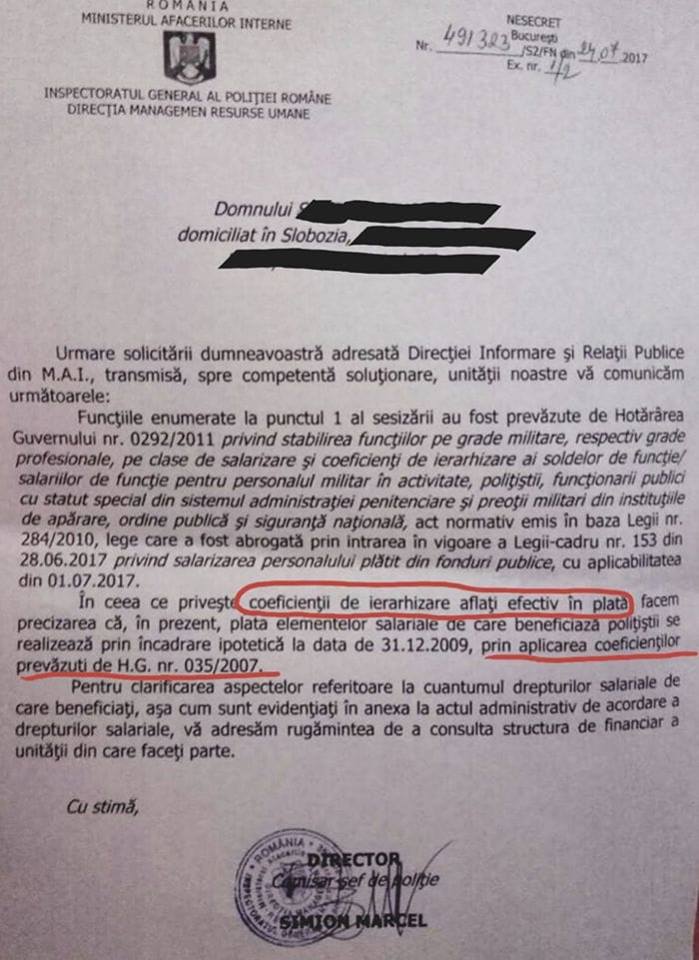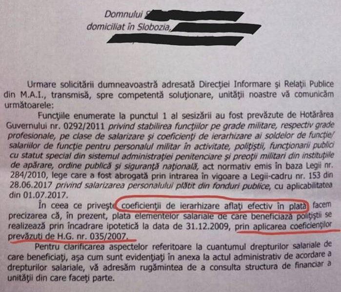 În aceste condiții, funcțiile de polițist nu au existat niciodată (întrucât nu au fost înființate prin lege), legile unitare de salarizare (care nu au intrat niciodată în vigoare pentru aplicarea coeficienților maximi) pentru personalul bugetar oferind doar „o marjă de apreciere”… și, neavând polițiștii funcții stabilite prin Lege, TOATE ACTELE PERSOANELOR – POLIȚIST DIN M.A.I. ȘI POLIȚIE CARE AU ÎNTOCMIT ÎNSCRISURI DIN ACEASTĂ CALITATE SUNT LOVITE DE NULITATE ABSOLUTĂ!