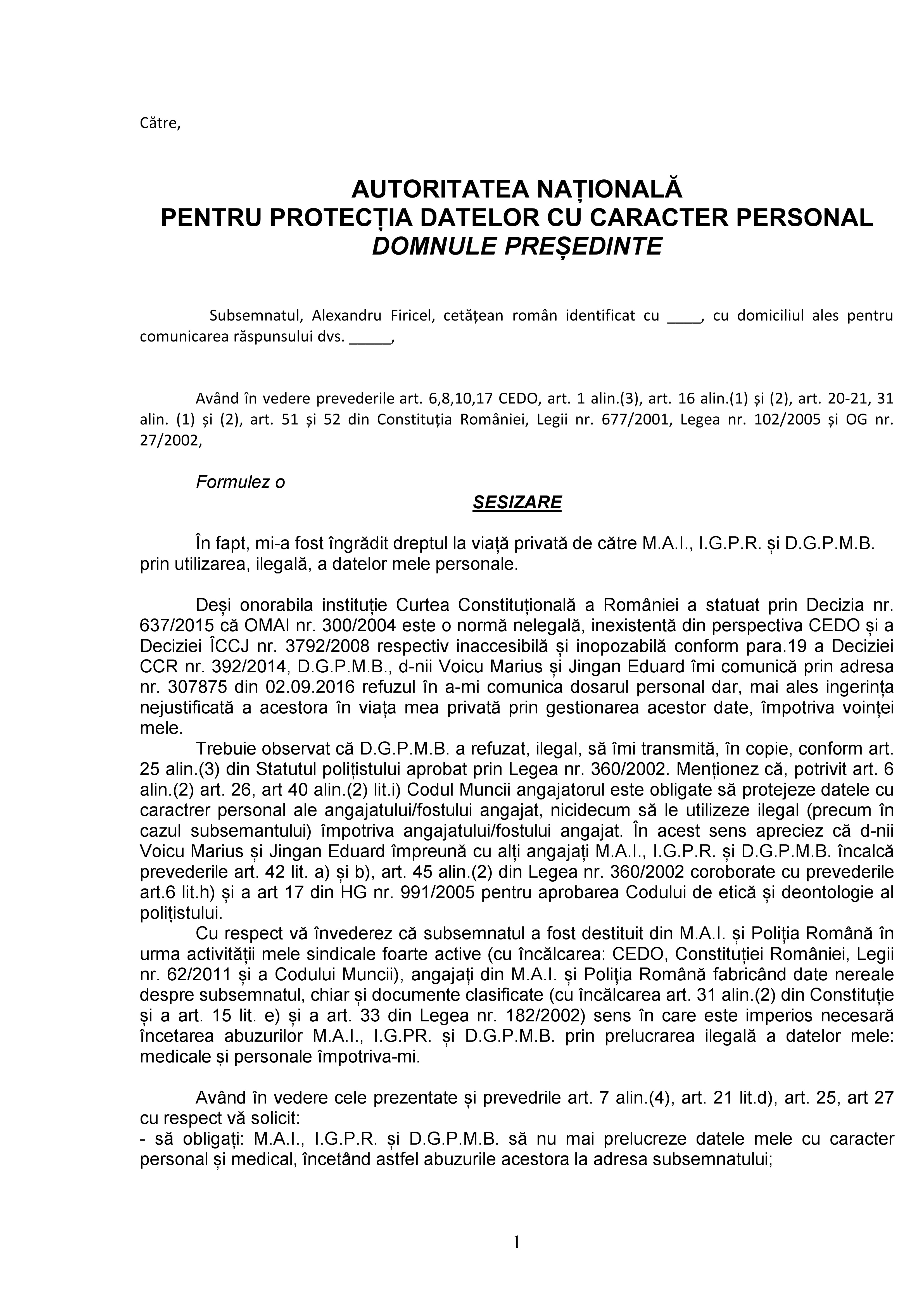 Iar acum, MAI-ul și DGPMB-ul prelucrează datele cu caracter personal în baza OMAI nr.140/2016 (semnat de Tobă, după ce împreună cu Guvernul Cioloș au modificat ilegal, prin ordonanțe de urgență, statutul polițistului – o lege organică, la o dată la care Guvernul nu era abilitat să emită ordonanțe).