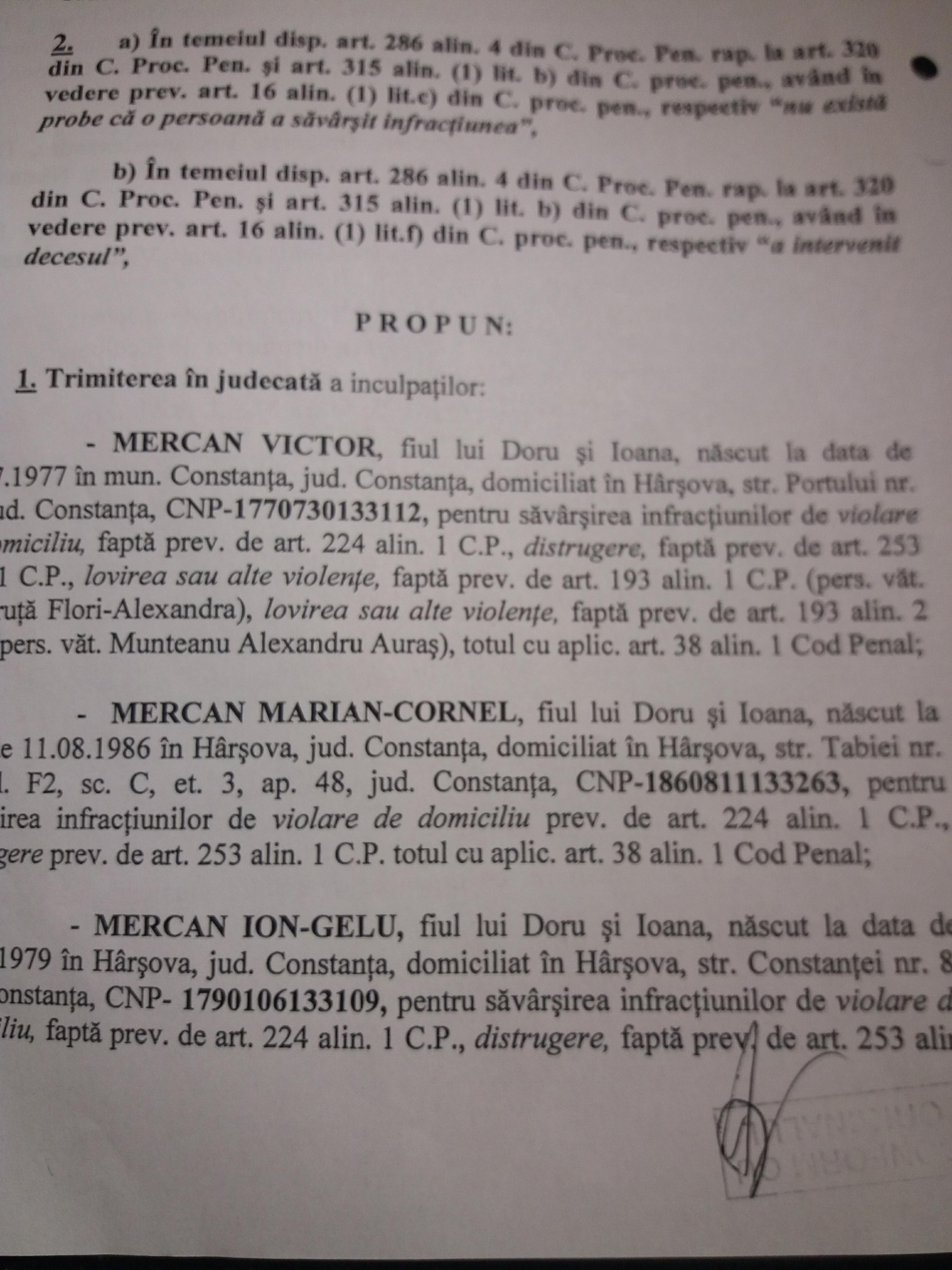 Iata de ce se incearca condamnarea de urgenta in acest dosar aflat pe rolul Curtii de Apel Constanta, pe „repede inainte”: adevaratul rechizitoriu trimis in judecata si adevaratii faptasi, conform referatului de urmarire penala nr 1143/2015, sunt acestia: