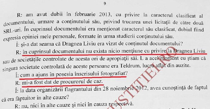 In cuprinsul documentului nu exista nicio mentiune cu privire la Liviu Dragnea sau de societatile controlate de acesta ori de apropiatii sai. La acel moment eu stiam ca singura societate controlata de aceste persoane era TelDrum, lucru aflat din auzite… inscrisul mi-a fost dat de procurorul de caz. (…)