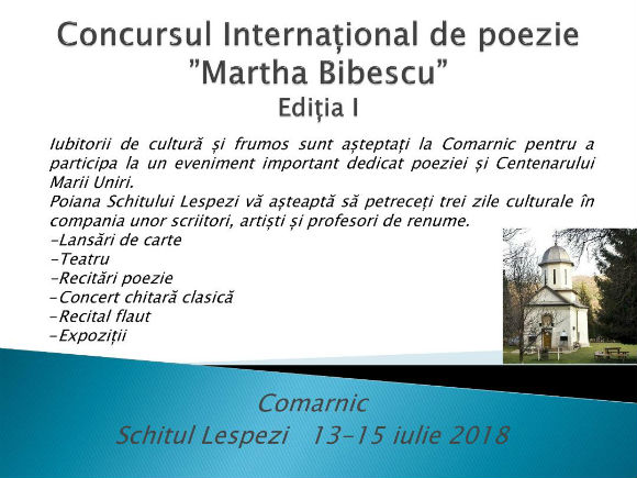 Eveniment cultural la Comarnic, la Schitul Lespezi. Aici are loc un concurs internațional de poezie, dedicat Centenarului.