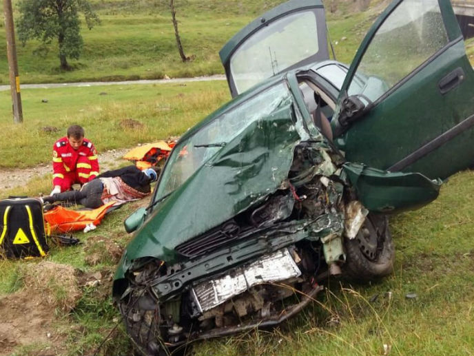 Este vorba despre: bărbat 20 ani – traumatism cranio facial, bărbat 19 ani – traumatism cranio cerebral, femeie 20 ani – traumatism coloană lombară, bărbat 23 ani – traumatism claviculă. Toți răniții vor fi transportați la spital.