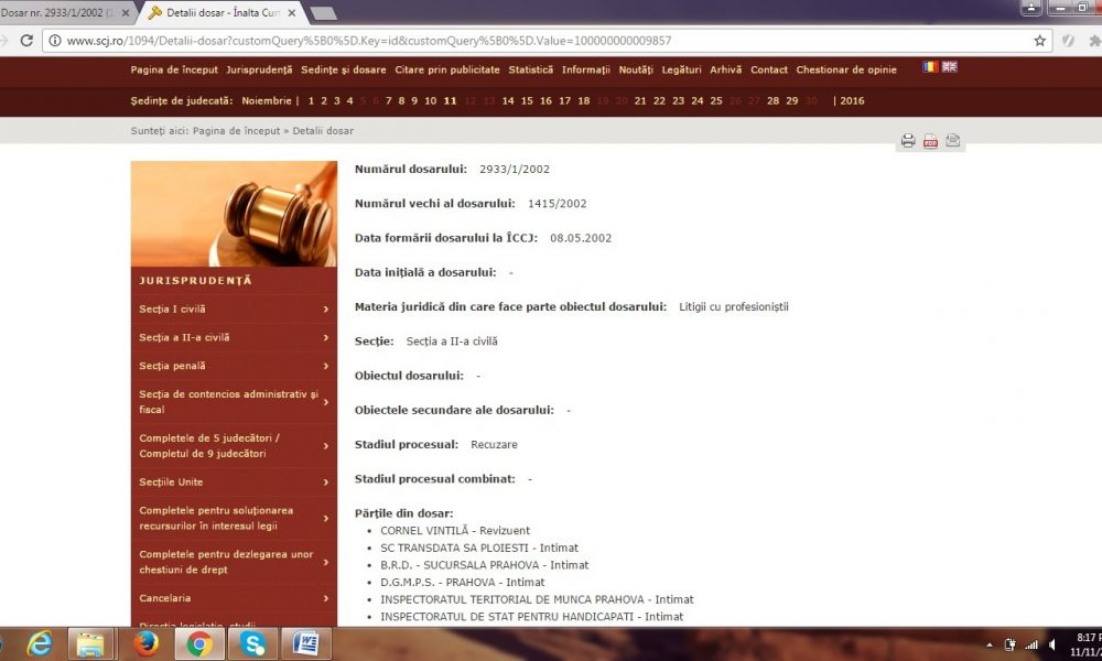 Curios (dar şi o dovadă indirectă) este dosarul nr. 2933/1/2002 (nr. vechi 1415/2002) inregistrat 08.05.2002 la sectia a II-a Civila (litigii cu profesionistii) a Inaltei Curti de Casatie si Justitie, in care conexiunea TRANSDATEI cu Păltânea este, pentru noi, certa, nu avem niciun dubii.