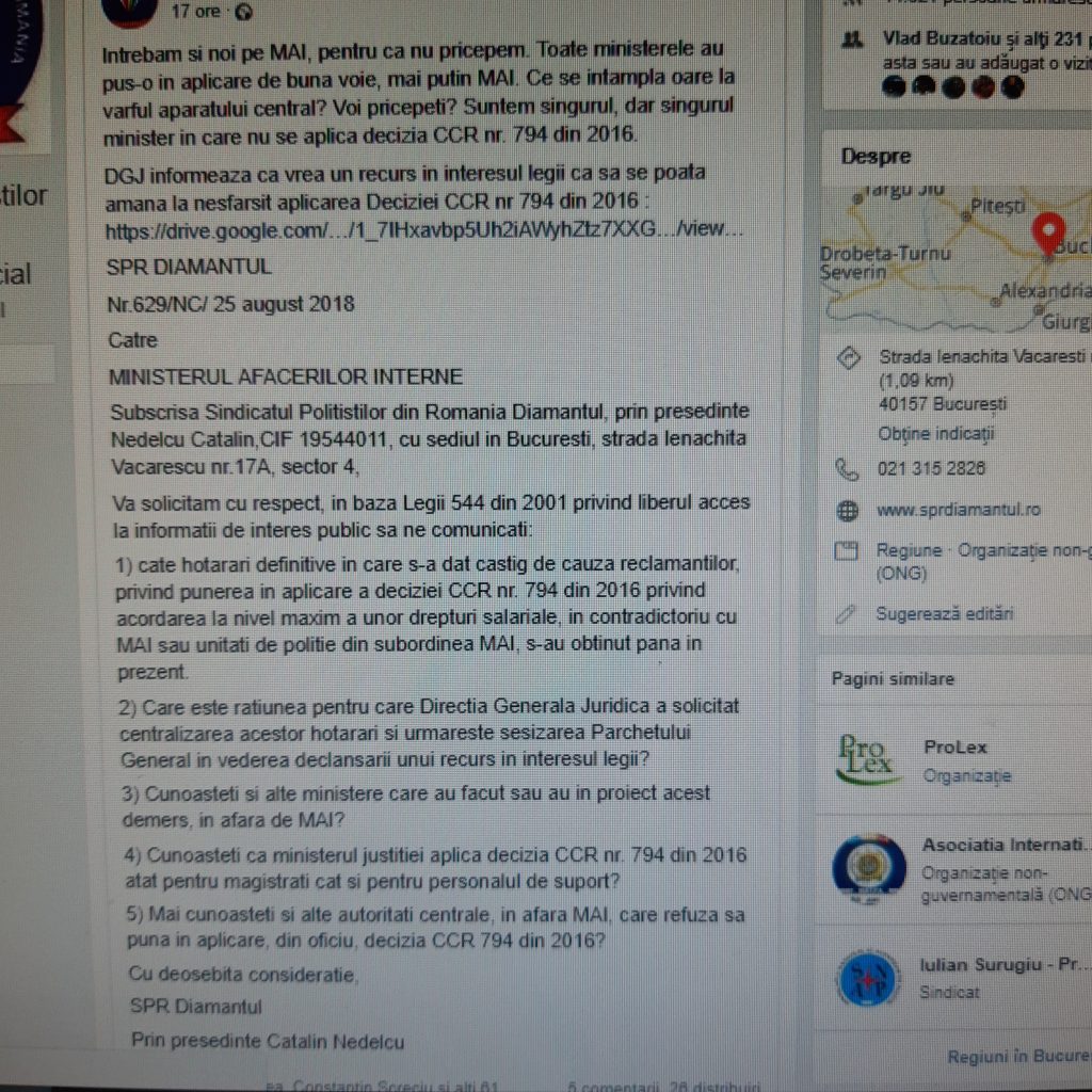 Ca drept dovadă, după ce ziarul incisiv de Prahova a dezvăluit public că MAI-ul se rpegătește să atace deciziile favorabile ale instanțelor de judecată (https://www.incisivdeprahova.ro/2018/08/18/exclusivpolitistii-din-carton-contraataca-detrimentul-legii-si-al-politistilor-si-militarilor-din-strada-respectiv-din-frontiera/) în 24 august 2018 a fost postată o petiție chipurile compusă de Nedelcu (nu are el, săracul, atâta capacitate și miștocăreală ca Păscuț)… de fapt, e cam scrisă de pensionarul Păscuț și care se bazează pe aceași circulară publicată de Incisiv de Prahova în urmă cu mai bine de o săptămână: 339029/13.08.2018. De fapt, în afară de petiții prostești nu prea mai au ce face. Cică auzi întrebare „de jurist deștept”: „2) Care este ratiunea pentru care Directia Generala Juridica a solicitat centralizarea acestor hotarari si urmareste sesizarea Parchetului General in vederea declansarii unui recurs in interesul legii?” sau „5) Mai cunoasteti si alte autoritati centrale, in afara MAI, care refuza sa puna in aplicare, din oficiu, decizia CCR 794 din 2016?”