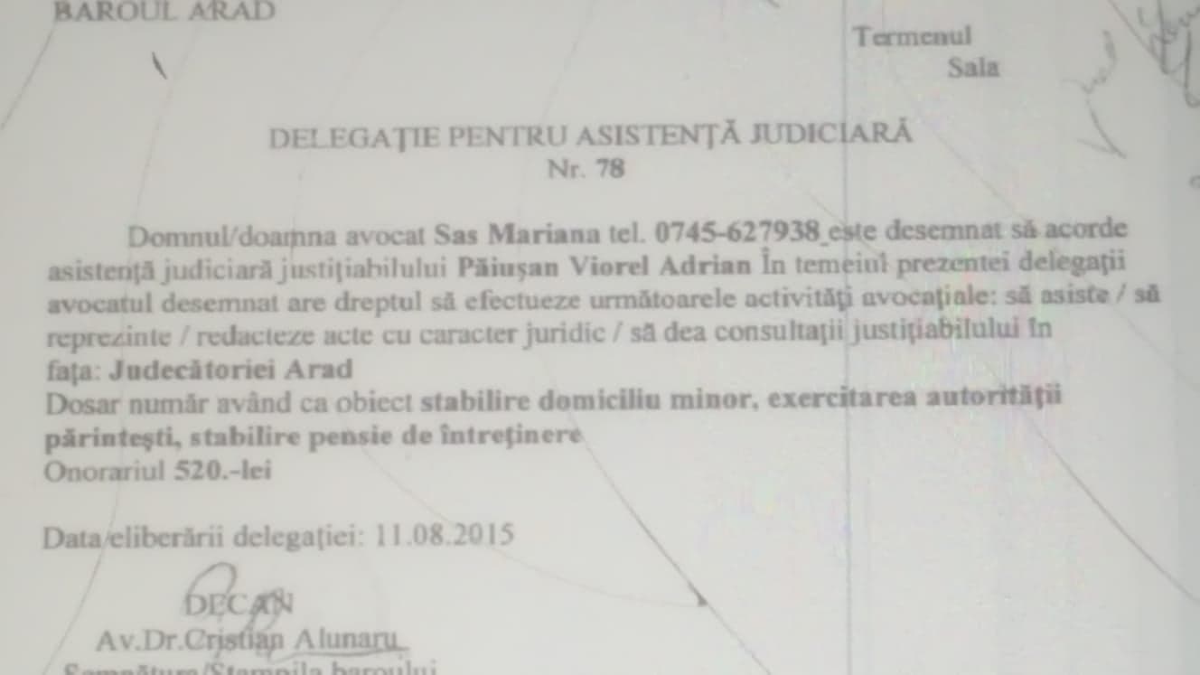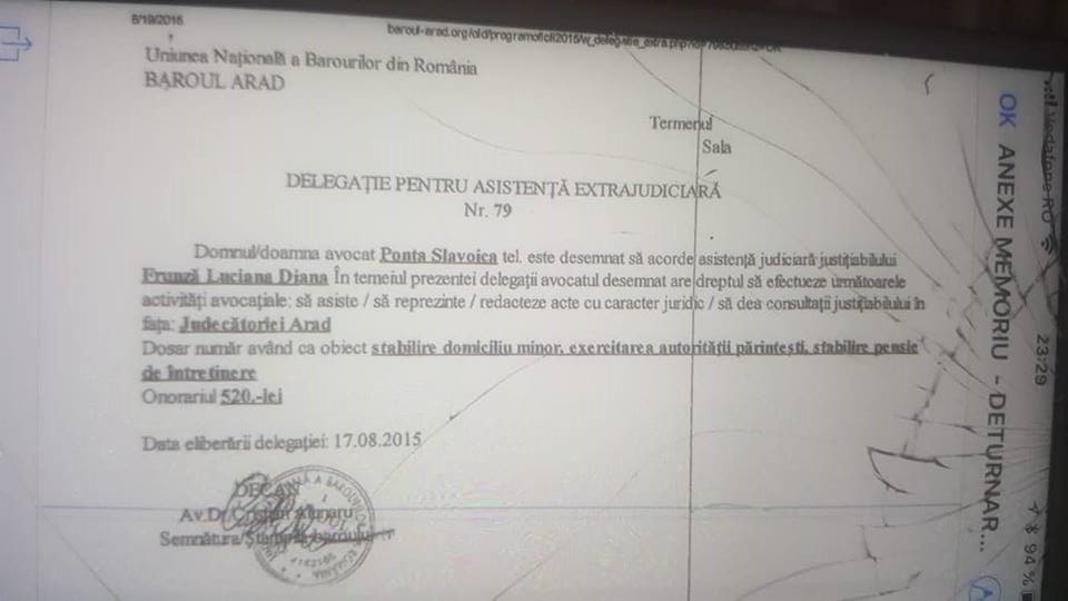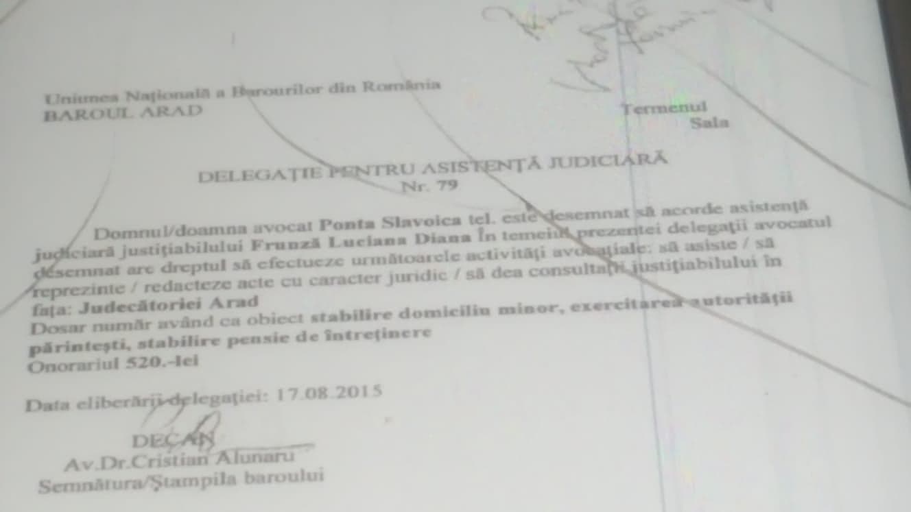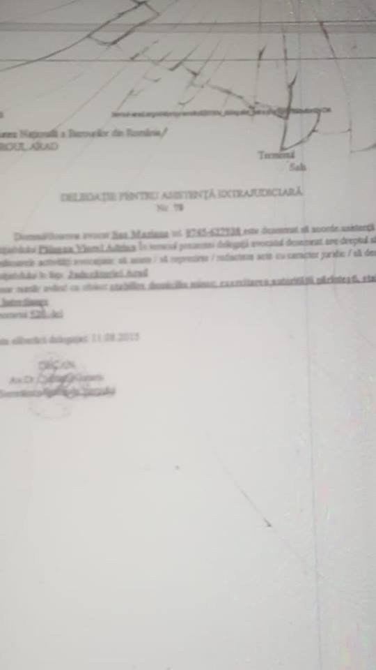 In numarul trecut, am prezentat o Ordonanță a procurorului DNA care instrumenteaza cazul furtului banilor Ministerului Justitiei de catre avocați din Baroul Arad cu complicitatea unor judecători aradeni, prejudicierea fondurilor cum zice domn’ procuror. În aceeași Ordonanță domnul procuror reține indicii de fals. Noi va prezentam in acest episod dovada existenței acestor falsuri. Astfel, în februarie 2016, pentru a-si ascunde infracțiunile, decanul Baroului Arad, Alunaru Cristian, emite sub acelaș număr si aceeasi data cu cele atribuite în 2015 delegații pe care le intitulează judiciare (desi nici de data aceasta nu existau cereri de acordare a ajutorului public judiciar încuviințate de către instanta, astfel cum prevede legea). Falsul material este evident si a fost comis în fața instanței de judecată astfel cum rezultă din consemnarea judecătorului, făcută chiar pe delegație. Ei, după cum v-am dezvăluit în episodul anterior, judecătorul care a procedat astfel, dând dovadă nu doar de corectitudine ci si de curaj este Lavinia Cotofana.