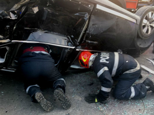 La fața locului au intervenbit echipajul de descarcerare, o autospecială de stins incendii cu apă și spumă, un SMURD și un echipaj SAJ Brașov.