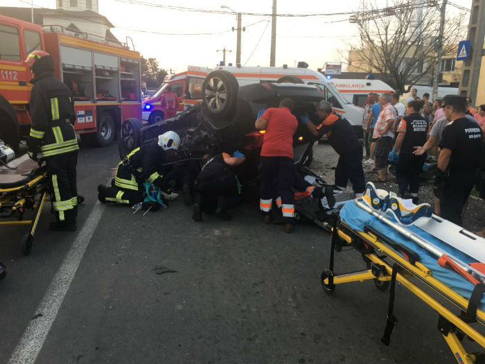 Brasov: Accident grav in zona Stupini (foto), soldat cu o victimă încarcerată. Evenimentul s-a petrecut duminică seara.