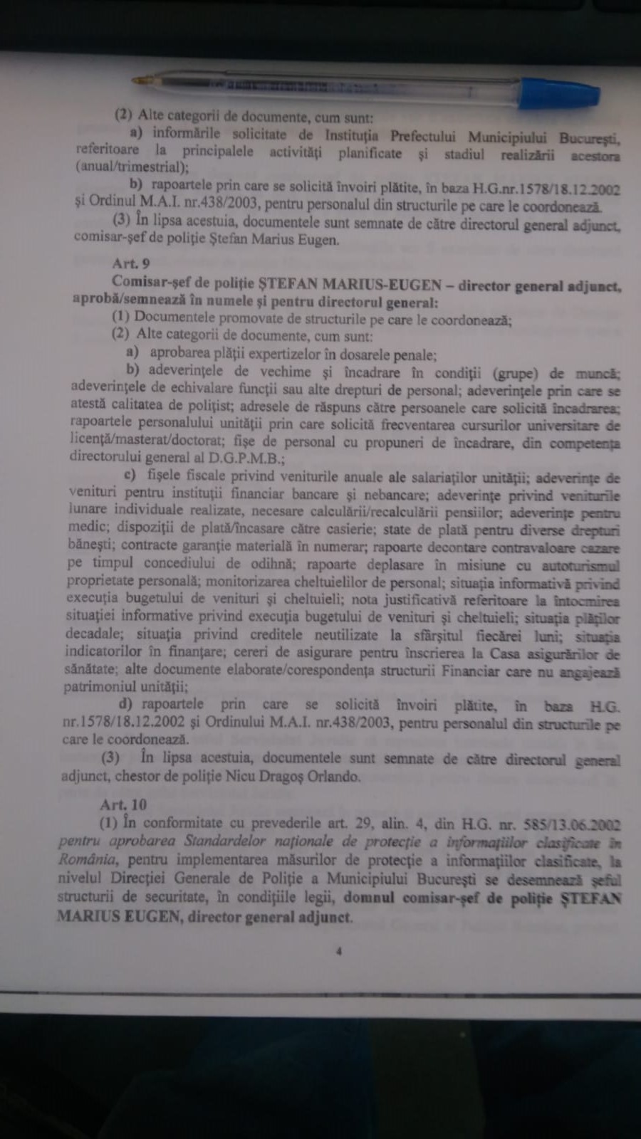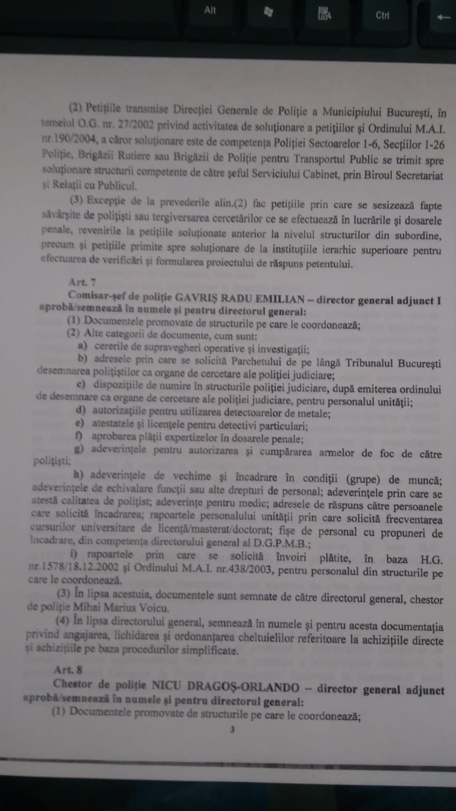 N.R. Regretăm că polițistul de mare valoare, Radu Gavriș a acceptat să semneze această potlogărie gândită și scrisă de niște inculți, prostovani cu epoleți. Dacă mai rămâne mult în rândurile acestor incompetenți, e posibil să îl pierdem și pe Radu Gavriș… iar pierderea unui profesionist este o pierdere pentru cetățenii Bucureștiului dar și ai țării.