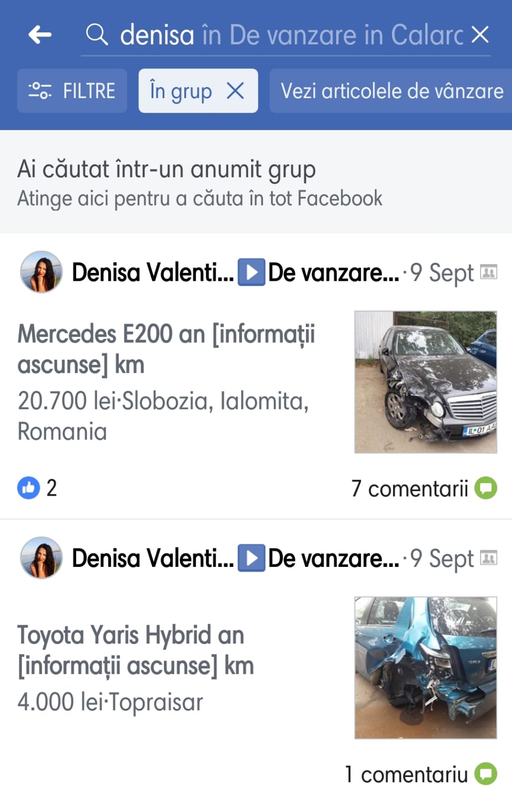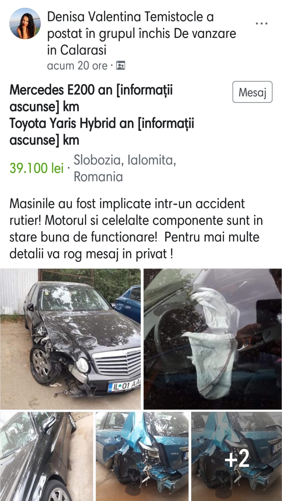 La data de 09 septembrie, pe grupurile de facebook „De vânzare în Călărași” și „De vânzare în Medgidia” au fost postate de sora „grefierei de cristal” Toma Angelica, numita Temistocle Denisa (fosta soție a împuternicitului șefului adjunctului șefului IPJ Ialomița și titular al postului de șef birou control interne, Iordache Mihail-Valentin) fotografiile cu cele 2 autoturisme conduse de soții Toma la data prodecerii evenimentului, în vederea vânzării acestora.