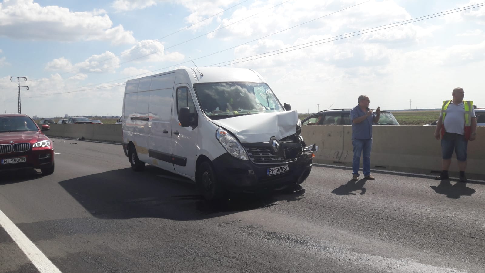 Din primele informații, rezultă că șoferul de pe dubiță (foto) ar fi fost vinovat, deoarece a lovit două mașini din spate.