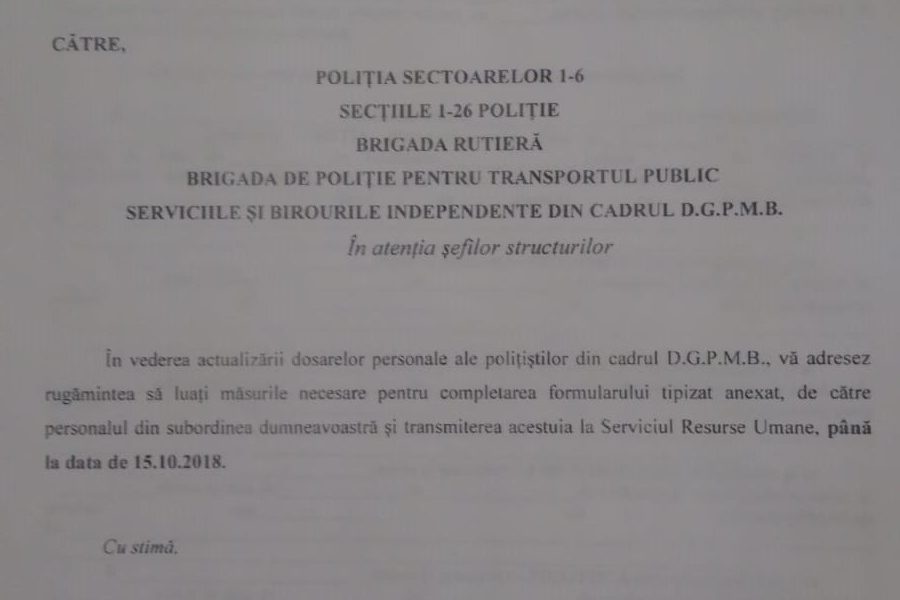 Cre(ș)tinii ăia care au redactat și semnat acea adresă or fii aflat de articolul 6 lit.a): (legalitatea – în exercitarea atribuţiilor sale poliţistul este obligat să respecte legea, precum şi drepturile şi libertăţile constituţionale ale persoanelor) și de articolul 22 Poliţistul are obligaţia de a verifica sistematic şi de a asigura legalitatea acţiunilor sale, înaintea şi în timpul desfăşurării acestora, atât din perspectiva respectării legislaţiei naţionale, cât şi a documentelor internaţionale la care România este parte din Codul Deontologic al polițistului (HG nr.991/2005)? Siguri nu, căci și în DGPMB ca și în tot MAI-ul Legea, Constituția, CEDo sunt „cai verzi pe pereți”, prostia și incompetența fiind ridicate la rangul de „mare șef iluminat”, din păcate. (Simona F.).