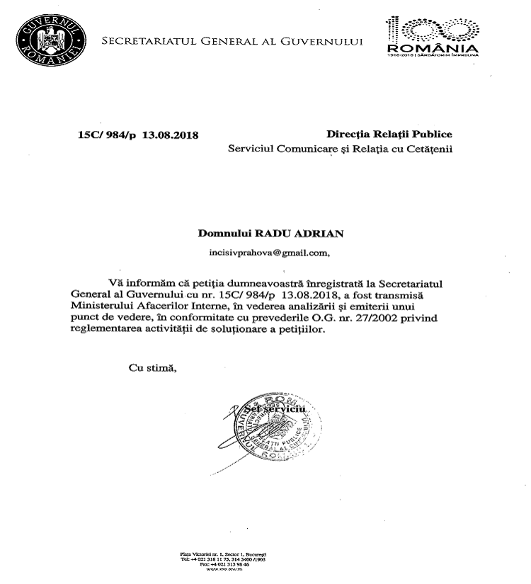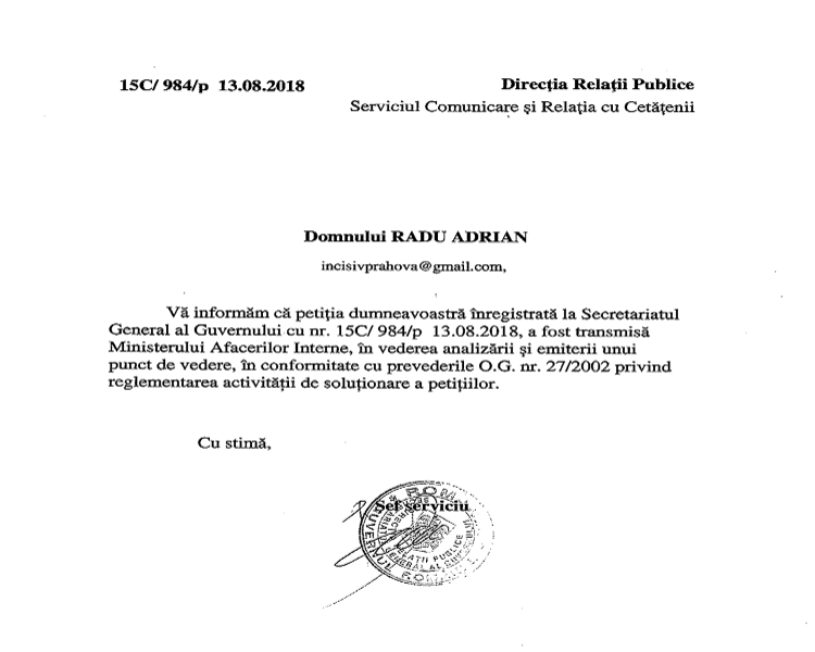Tocmai de aceea Incisiv de Prahova a demarat un nou proiect de reformare a statului român prin începerea amendării legislației domeniului Ordinii și Siguranței Publice (oglinda oricărui stat din această Lume). Ca drept dovadă că aleși ai noștrii (guvernanți) și funcționari ai statului român sunt analfabeți funcțional și inculți, nu au înțeles că solicitarea noastră se referă la toți militarii din România respectiv polițiștii români (M.A.I.). Așa că Guvernul României a trimis solicitarea noastră doar la M.A.I. unde, alți „deștepți” (dar plini de epoleți), au considerat că este o cerere de informații publice nicidecum o solicitare în baza art.51 Constituție și OG nr.27/2002 privind activitatea de soluționare a petițiilor.