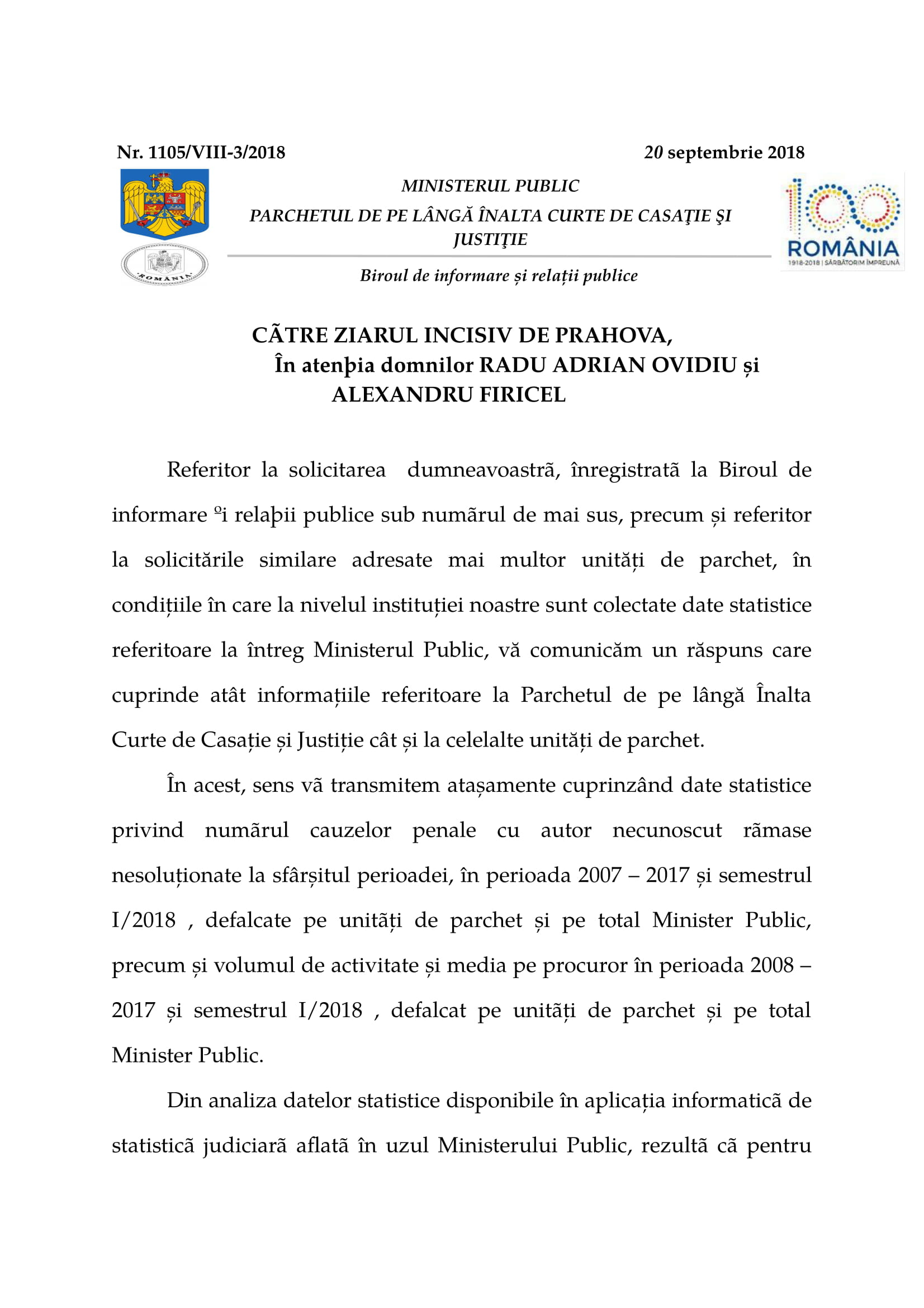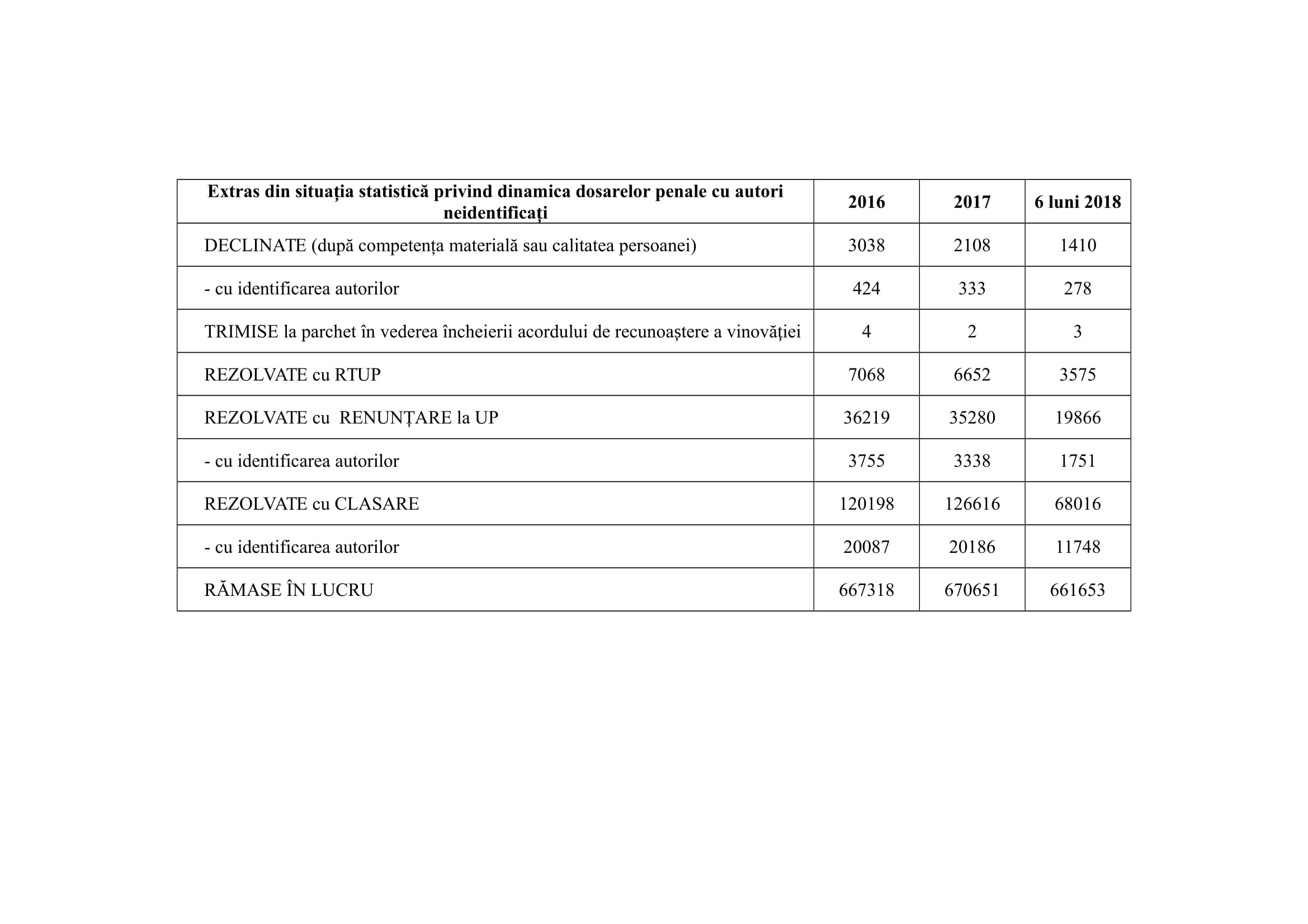 Însuși Parchetul de pe Lângă Înalta Curte de Casație susține această „reorganizare a dosarelor penale cu autor necunoscut pentru care nu există o statistică”.