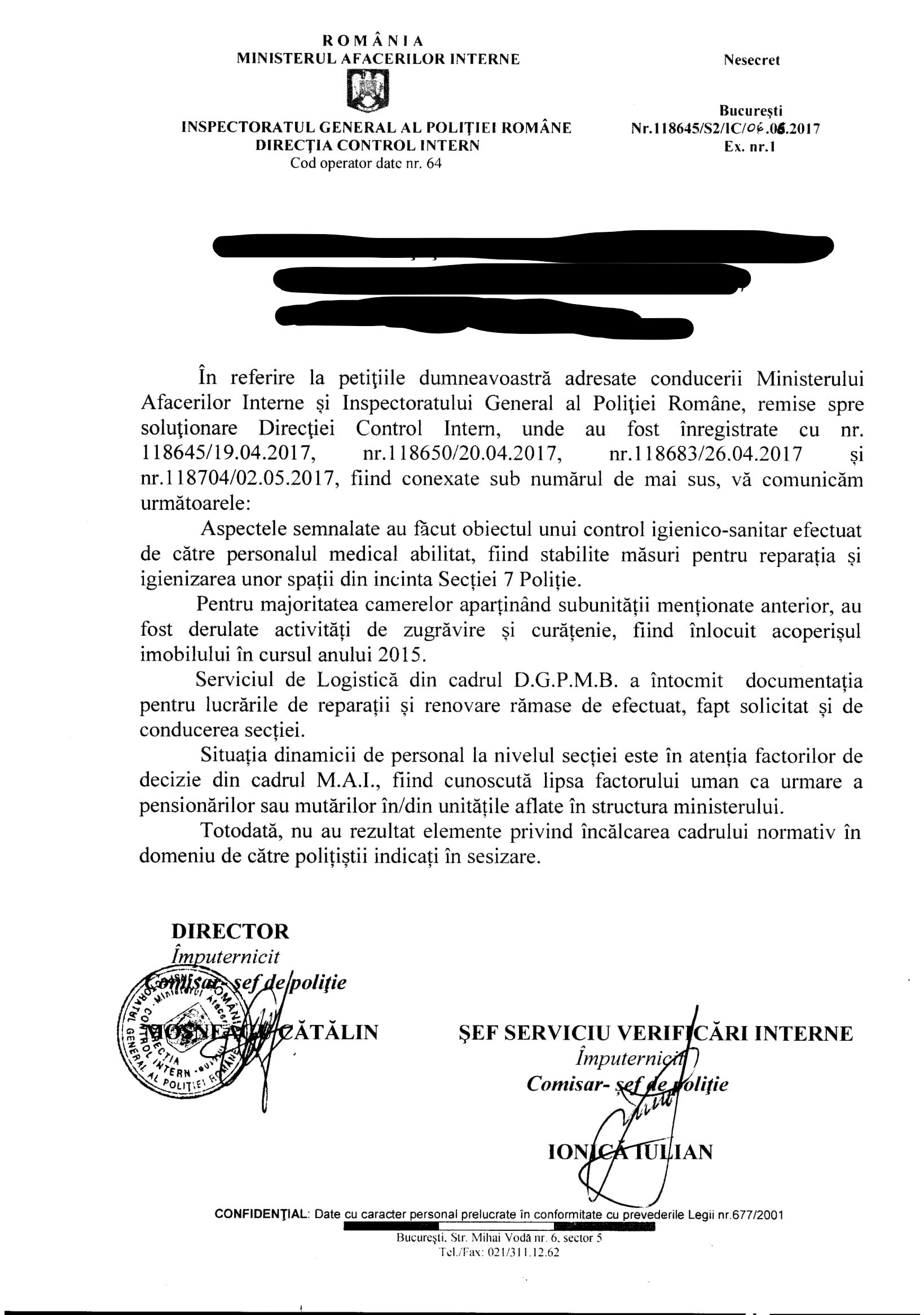 Ca drept dovadă, acest mizerabil și gașca lui de „petarde cu epoleți” de la control intern ori-de-câte-ori clasau sesizările: cetățenilor, sindicatelor etc. cu privire la „mahării cu epoleți” nu prevedeau în cuprinsul „răspunsului” și temeiul legal (o încălcare a OG nr.27/2002 și a art.51 alin.(4) Constituție). Mai exact, pentru ca „infractorii cu epoleți” să nu fie cercetați disciplinar și, eventual, înaintat dosarul de cercetare disciplinară la Parchet pentru continuarea verificărilor sub aspectul săvârșirii unor fapte penale, acest Moșneagu și gloata lui de impostori cu epoleți (niște „moluște” umane fără cunoștințe de drept, fără integritate umană și profesională ci doar „auz fin pentru a-l satisface pe bossu-lache”) sunt reminiscențele chestorului Tudorel Sandu (un plagiator de 2 parale care se bucură liniștit de pensie pentru că a distrus o mulțime de polițiști integrii și a salvat o mulțime de șnapani cu epoleți de la pușcărie … șnapani care acum sunt „mari șefi de inspectorate, IGPR respectiv MAI”). În prezent, chestorul Sandu „lucrează” la pseudo-organizația profesională a polițiștilor, Corpul Național al Polițiștilor de unde mai încasează o leafă de șmecher din banii membrilor dar și ai M.A.I.-ului