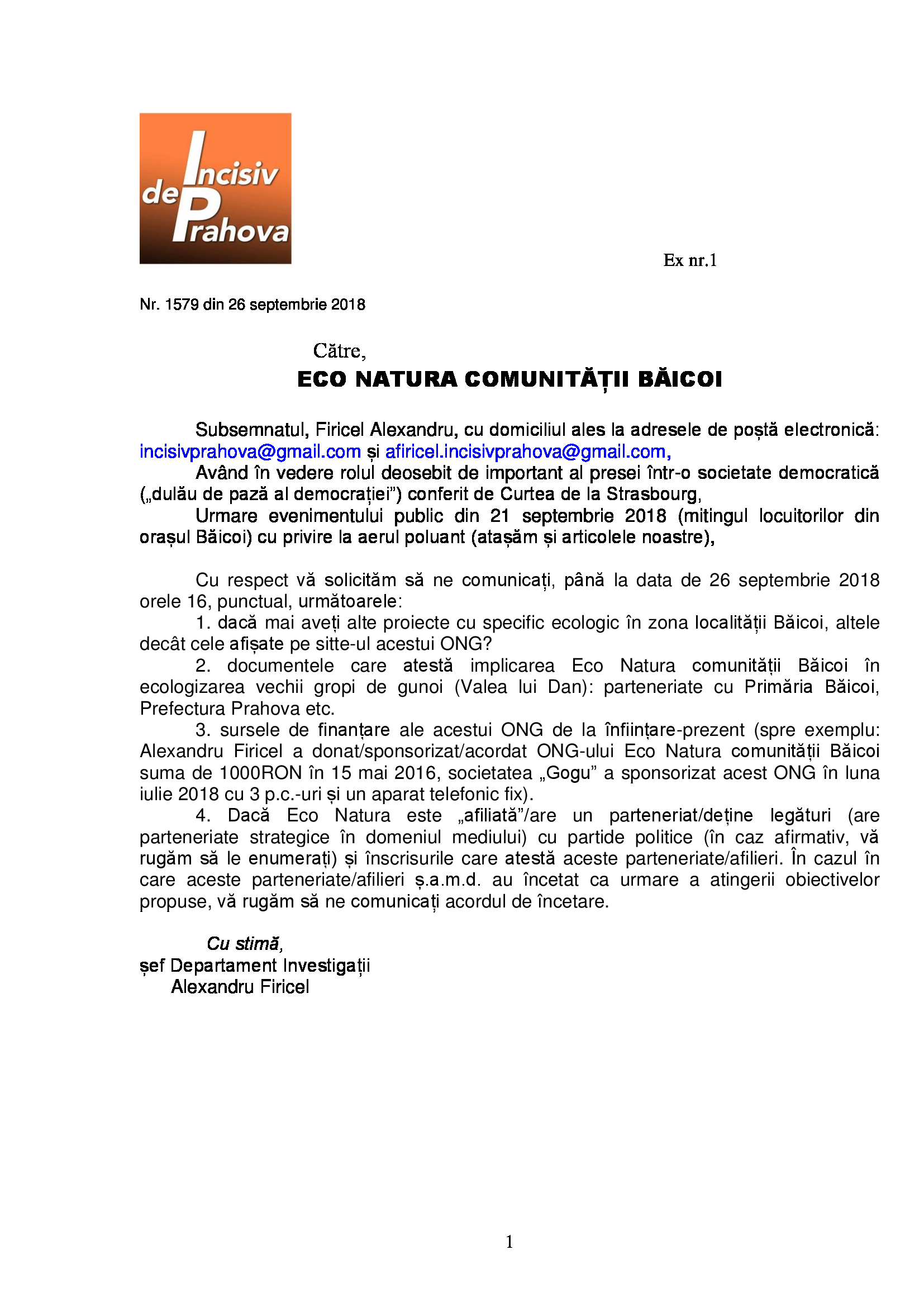 Tocmai pentru că ziarului Incisiv de Prahova nu-i place „să vorbească vorbe”, Legea fiind una pentru toți, în cazul manipulării ecologiste de la Băicoi am continuat investigațiile rezultatul fiind (așa cum ne așteptam, de altfel) o crasă dezinformare a unor „ecologiști” politizați.