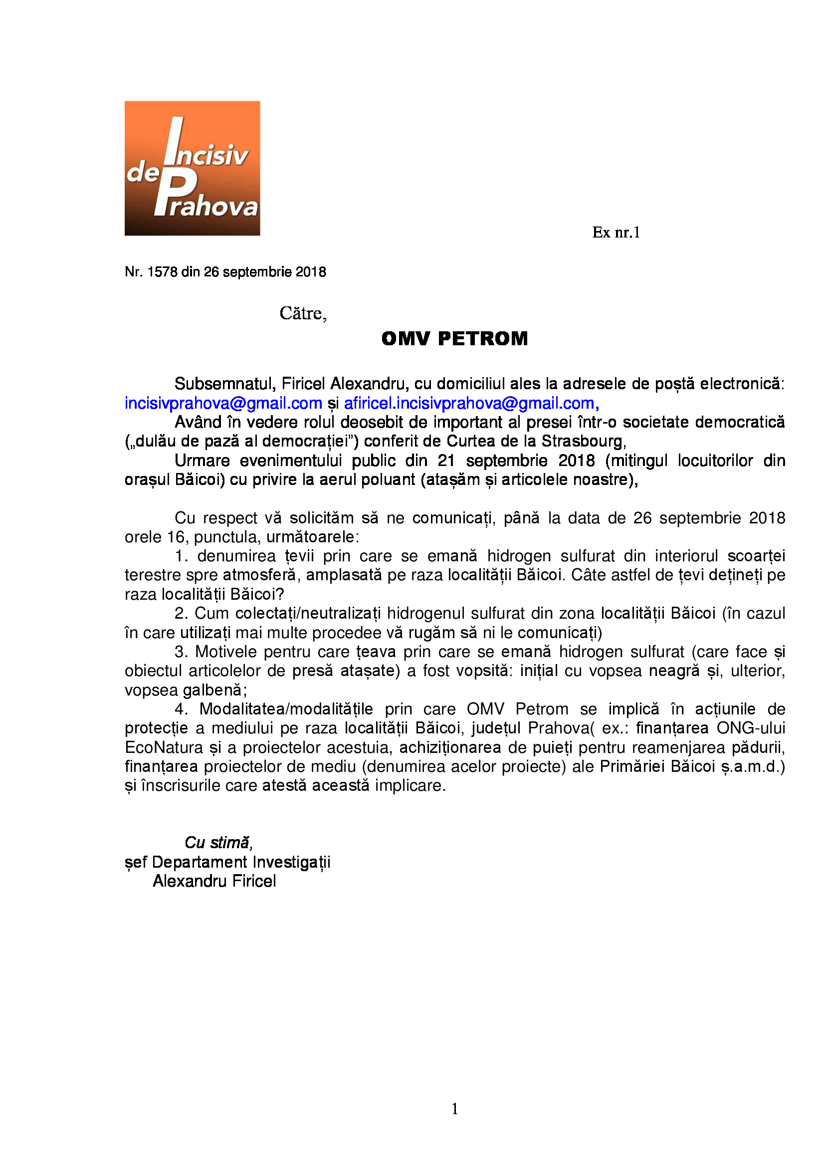 OMV PETROM REFUZĂ, DEASEMENEA, SĂ RĂSPUNDĂ SOLICITĂRII INCISIV DE PRAHOVA!