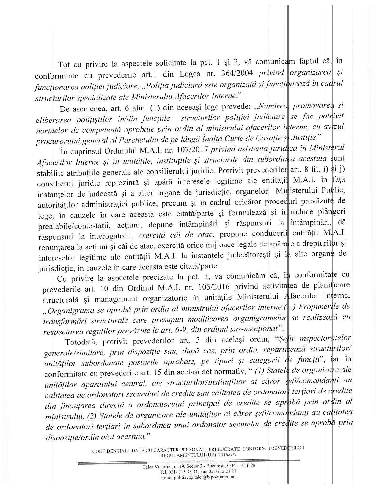 Problema falșilor consilieri juridici (neavizați de organizația profesională, cu încălcarea deciziei C.E.D.O. Colegiul Consilierilor Juridici Argeș contra România) care ajung în: magistratură, avocatură, a rămas … indivizi inculți, (ne)incompetenți, rău-voitori ce stau ascunși sub uniforma de polițist „își iau zborul” la pupitrul magistraturii și ajung să „împartă dreptatea” … cea învățată în M.A.I.: șeful are întotdeauna dreptate și poate dispune de viața și bunurile: cetățenilor, subalternilor după bunul lui plac. Așa cum face acest Voicu Marius (și nu numai) împreună cu gruparea lui de crimă organizată (șefii de secții, sectoare, structruile suport) care conduce „stâna” D.G.P.M.B. (Alexandru Firicel – sef Departament Investigatii)..