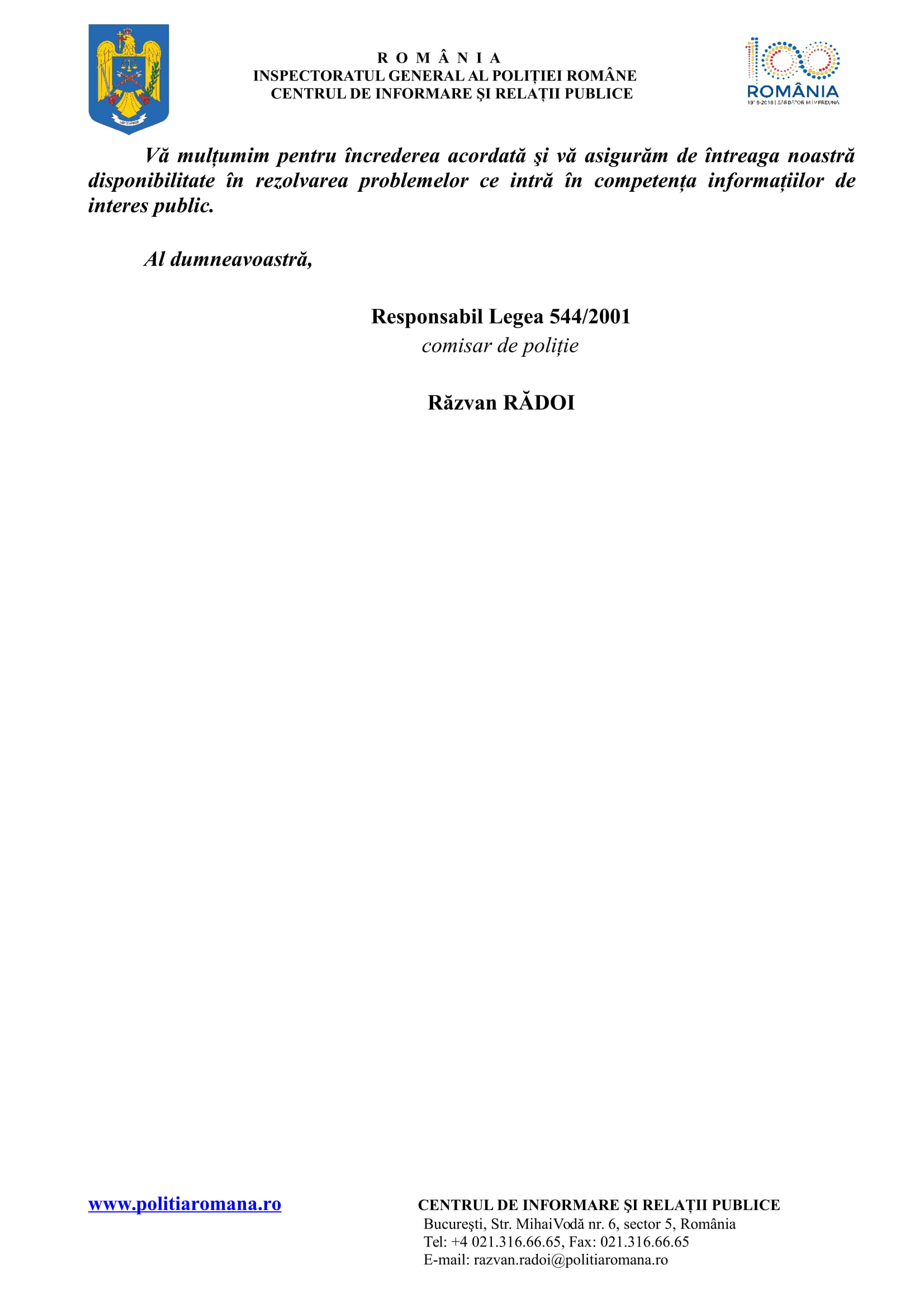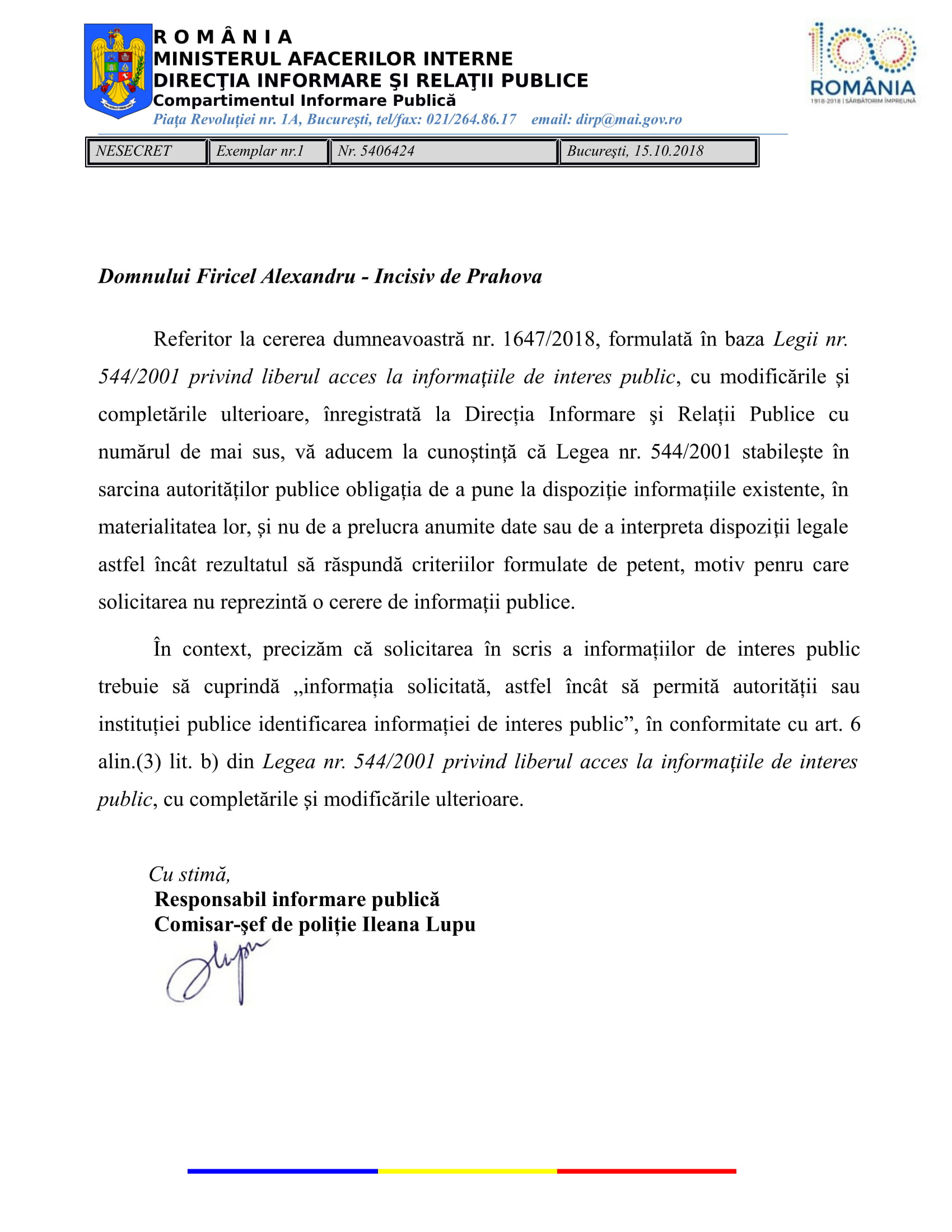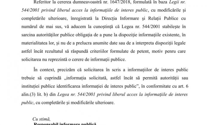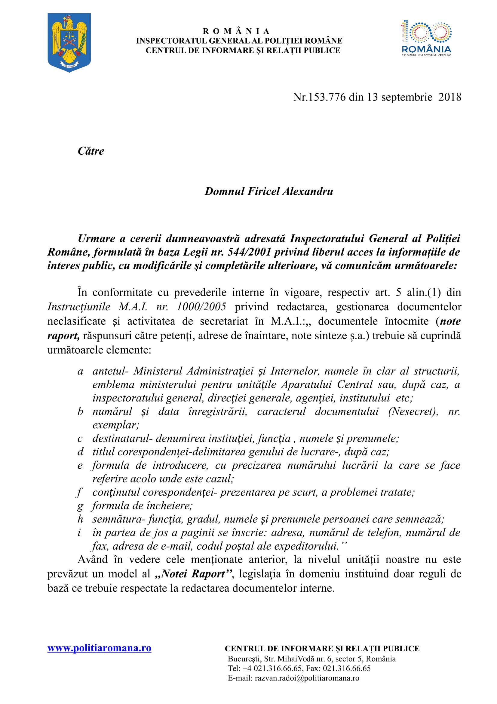 Cei de la IGPR sunt și mai simpatici (un răspuns la o solicitare asemănătoare, trimisă anterior): „nu ne pot oferi model de notă-raport”. Cine v-a cerut, stimabililor „model”? Noi v-am cerut să ne spuneți ce reprezintă această „minunată înțelepciune”: nota-raport nicidecum „model”. Dacă nu știți, scrieți și voi că nu știți ce hârtii emiteți în birouri fiindcă nu ne deranjează.