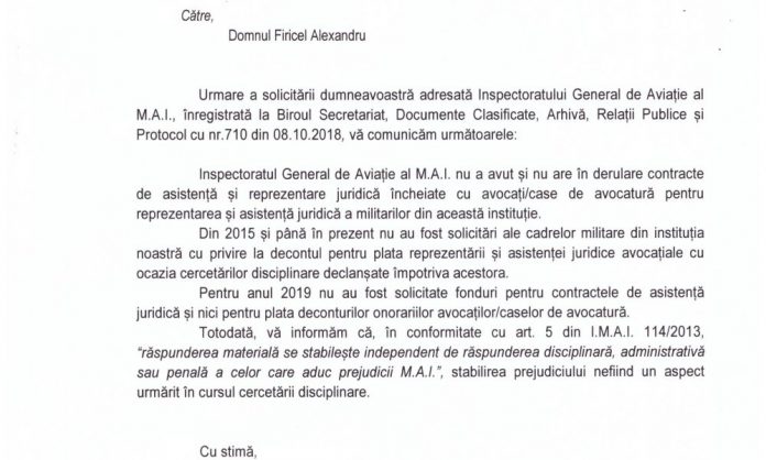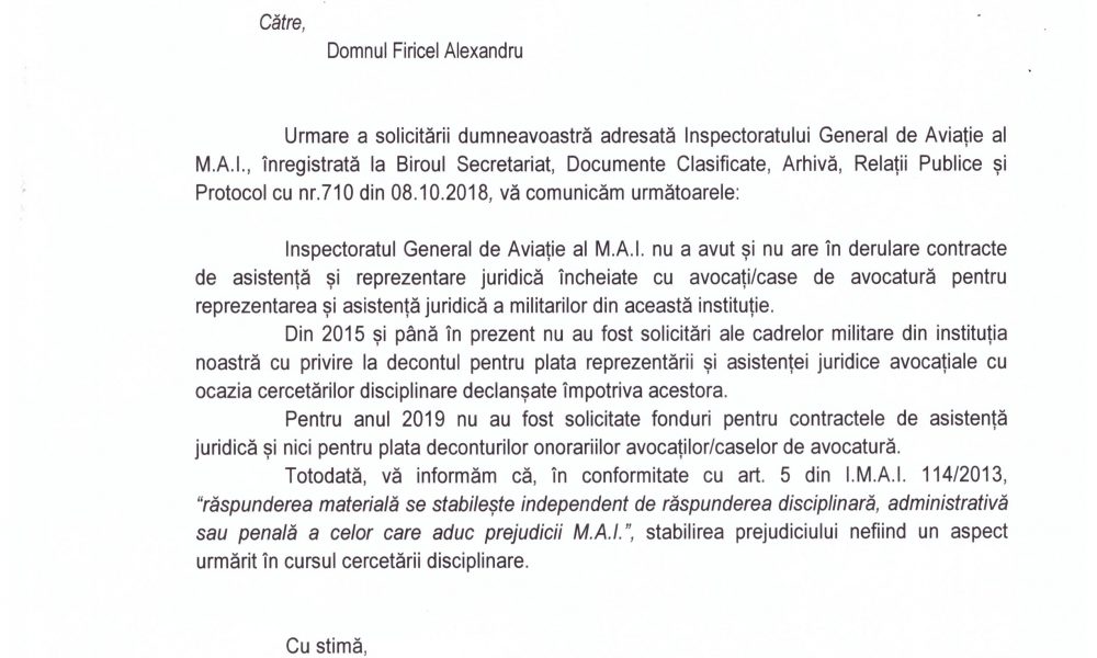 EXCLUSIV/INSPECTORATUL GENERAL DE AVIAȚIE AL M.A.I.: „MILITARII NU AU DREPTURI FUNDAMENTALE!”