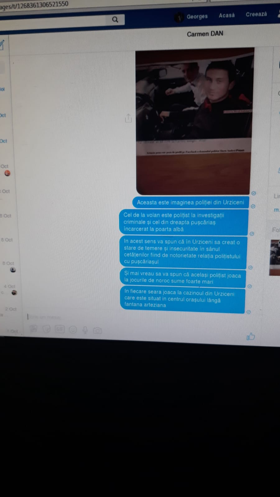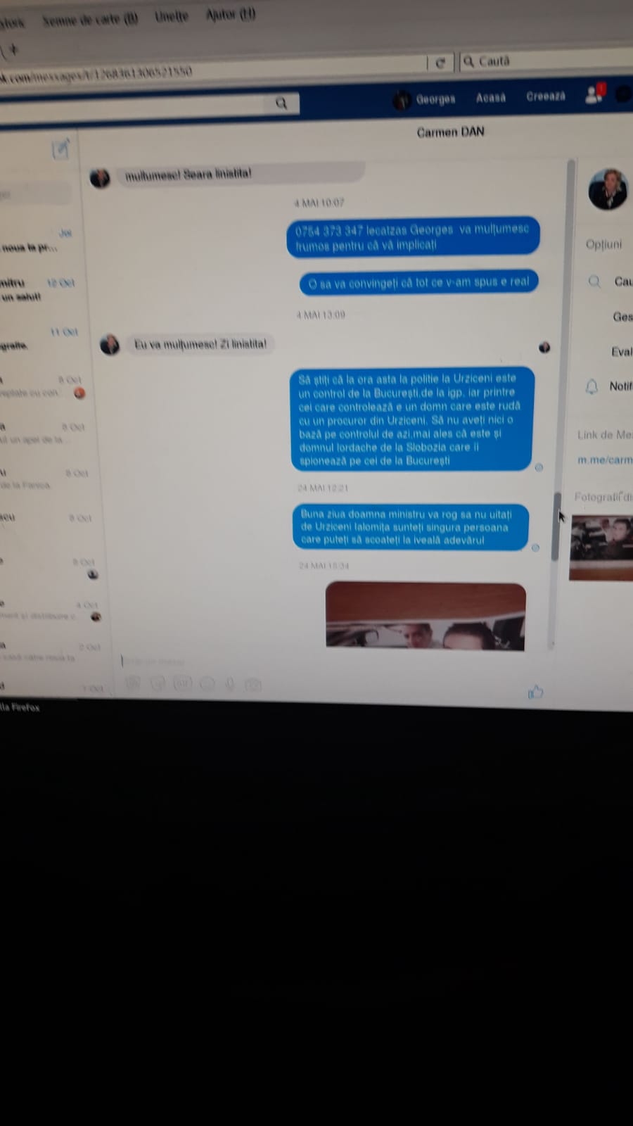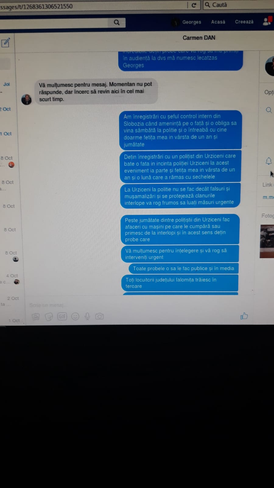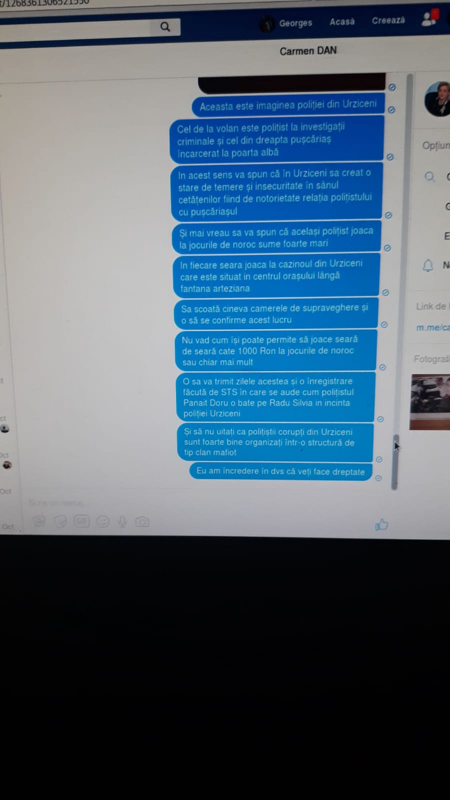 Ministra Internelor, Carmen Dan, a fost sesizată prin rețeaua de comunicații Messenger. I-au fost expuse fapte din Orașul Urziceni de către Lecatasz Georgesz care, ulterior a și avut o întâlnire cu oficiali M.A.I. dar și cu adjunctul I.G.P.R., Dragnea Florian… și atât. Cei din M.A.I. și I.G.P.R. nu sunt interesați de dramele pe care le trăiesc oamenii din județul Ialomița sub dominația interlopilor bugetari și a stăpânilor acestora, interlopii „veridici”. Doar este cunoscut faptul că partidele politice, politica în general este susținută cu bani negrii proveniți din activitățile de crimă organizată: proxenetism, muncă la negru (sclavie), trafic de: droguri, arme, carne vie, organe etc. Chiar și fostul politician „costarican” Elena Udrea a recunoscut aceste aspecte … așa cum a recunoscut public și fostul vicepreședinte PNL, Viorel Cataramă (https://www.revista22.ro/viorel-catarama-partidele-politice-sunt-structuri-mafiote-extrem-de-bine-organizate-80-din-banul-public-se-fura-clasa-politica-trebuie-maturata-democratia-romaneasca-de-fatada-43008.html).