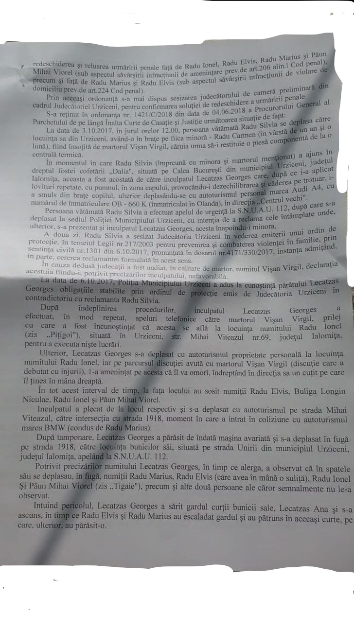 În schimb, pentru reclamantul care a sesizat aceste fapte cu violență, Lecatasz Georgesz, a fost dispusă de procurori ai parchetului de pe Lângă Judecătoria Urziceni reținerea și urmărirea penală pentru lipsirea de libertate a propriului copil, faptă reținută de procurori în urma unei altercații cu concubina acestuia.