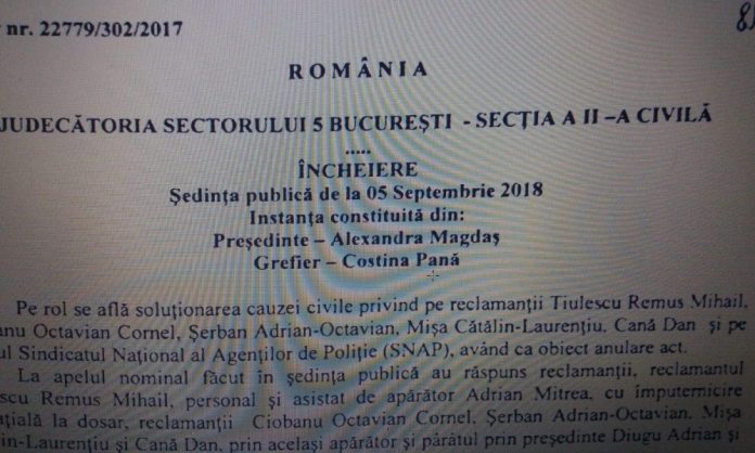 EXCLUSIV/ÎNCĂ ODATĂ JUDECĂTORIA SECTORULUI 5 DĂ DE PĂMÂNT CU PENSIONARII M.A.I. COCOȚAȚI ÎN FUNCȚII SINDICALE!
