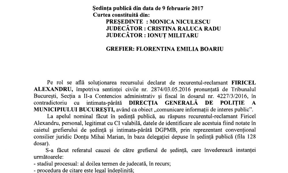 M.A.I. și I.G.P.R, așa cum ne-am obișnuit, au refuzat să răspundă… normal, doar creează probleme acești „zen cu epoleți” care, intoxicați de praful și întunericul din birouri trăiesc departe de lumea înconjurătoare, societatea reală. Iar DGPMB ul a recunoscut, cu scrâșnituri printre dinți că nu pot calcula niciun prejudiciu pentru „comportarea necorespunzătoare” manifestată de polițiști prin postările/textele expuse în public sau petiții (mai ales că însăși Curtea de Apel București a statuat în cauza nr.4227/3/2016 că petițiile cetățenilor și modalitatea de soluționare a acestora nu face parte din categoria documentelor de interes public). Cât despre „prejudiciul de imagine adus instituției prin expunerea propriilor opinii în spațiul public sau în cuprinsul petițiilor” este o reminiscență comunistă… dar foarte vie în mințile „tineretului bolșevic” care conduce în M.A.I. Iar acest „prejudiciu de imagine” menținut de „noii comuniști cu epoleți” (pecum cei din D.G.P.M.B. conduși de nimeni altul decât Voicu Marius, finul ex-ministrului plagiator, Tobă Petre, ajuns la cârma „stânei DGPMB” pe același principiu: „capul plecat în fața Înaltei porți” ca și predecesorii lui) este o invenție a unor minți bolnave psihic fiindcă o singură persoană nu se poate identifica cu toți angajații unei instituții/autorități/societăți/ONG ș.a.m.d. decât dacă e dusă cu pluta. În mintea acestor indivizi, dacă îl citează procurorul/instanța pe „șeful mare” se duce tot personalul din subordine la Parchet/instanță? Când șeful intră în concediu, tot personalul instituției intră în concediu? Deci e clar că asta cu „afectarea imaginii instituției” numai o minte bolnavă, incultă, o poate susține… „psihologii” și „medicii specialiști” M.A.I. o știu cel mai bine.