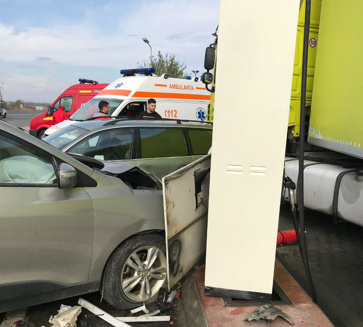 Accident cu 4 masini, in Prahova. Un autoturism a lovit o statie de carburanti