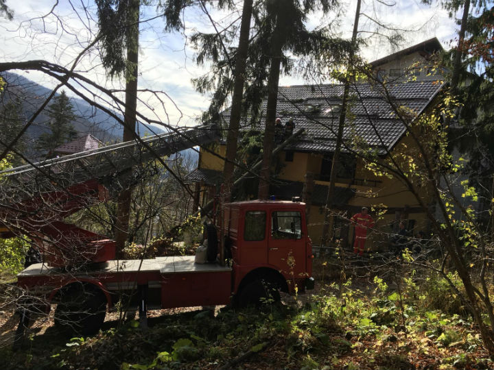Pericol deasupra unei case din Sinaia. Afla de ce au intervenit pompierii