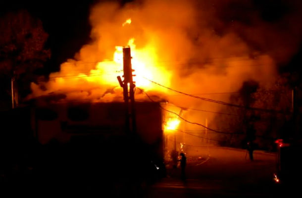 Buzau: O pensiune din Ciuta a ars aproape in intregime. De vină este faptul că întreaga clădire era din lemn și focul s-a propagat rapid.