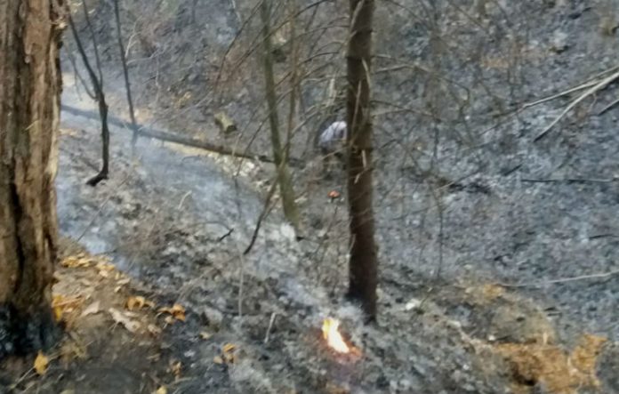 Intervvenția, însă, este dificilă, deoarece mașinile nu pot ajunge în zona incendiului.
