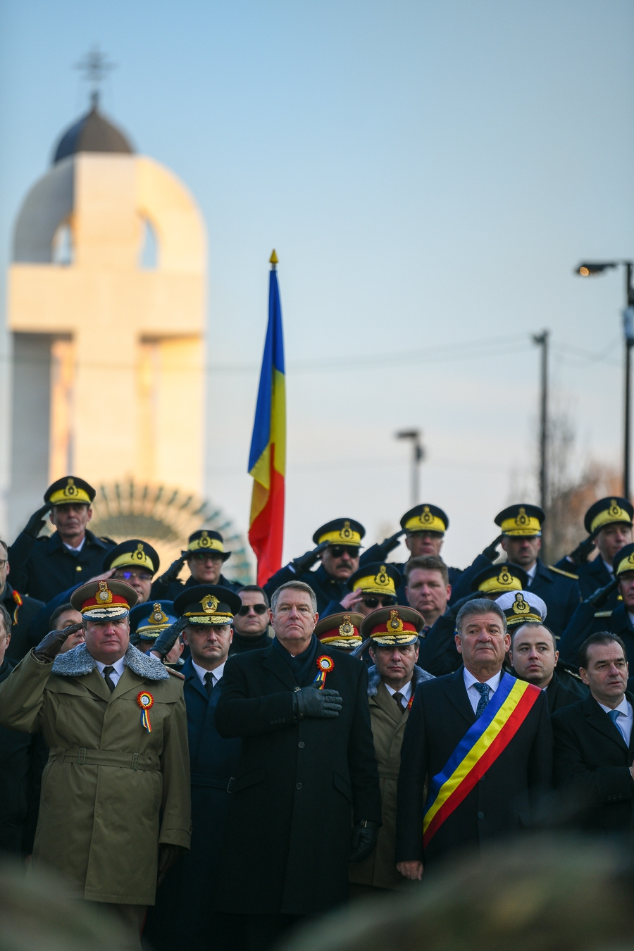 La Alba Iulia, președintele Klaus Iohannis are în stînga politicieni (foarte aproape și foarte interesant, Corina Crețu!), în stînga-spate (aproape ostracizați) oamenii de la Interne, în dreapta oamenii armatei, dar spatele și flancuriler îi sunt asigurate puternic de către SRI, prezent printr-o duzină, cel puțin, de generali, plus directorul civil Eduard Hellvig, ba chiar și prin purtătorul de cuvînt Ovidiu Marincea, cu toții cît mai vizibili posibil.