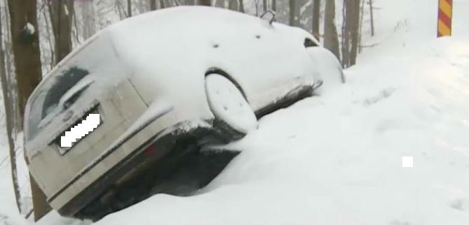 Valea Doftanei: Un sofer si-a salvat in extremis masina, dupa ce a derapat. Autoturismul, care circula pe raza satului Teșila, a fost la un pas să cadă în prăpastie.
