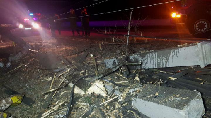 În urma impactului, stâlpul electric a fost rupt, o conductă de gaze spartă, iar mașina a luat și foc.