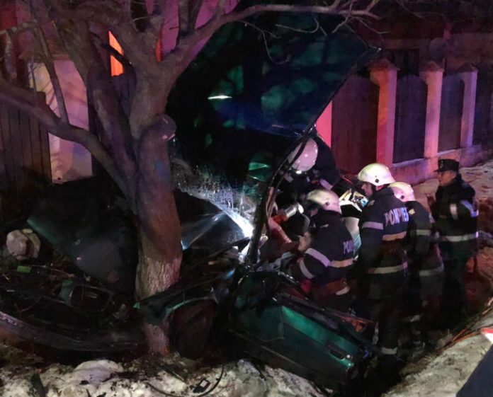 Accident dramatic. Doi oameni incarcerati in masina care a intrat in copac