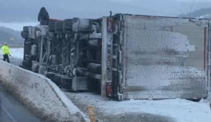 Un TIR rasturnat a blocat, timp de 5 ore, traficul la Breaza. Autotrenul a derapat în noaptea de marți spre miercuri, pe DN1, în zona gării.