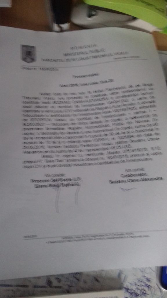Pentru sume cuprinse între 100 şi 800 de euro, sub coordonarea superiorilor din cadrul DRPCIV Bucuresti si ai celor din cadrul Prefecturii Vaslui, ”politisti” sau intermediari ofera celor care doresc sa-si inmatriculeze un vehicul, fara sa se prezinte la ghiseu sau fara astepta luni de zile programarea, ”servicii de inmatriculare rapida”