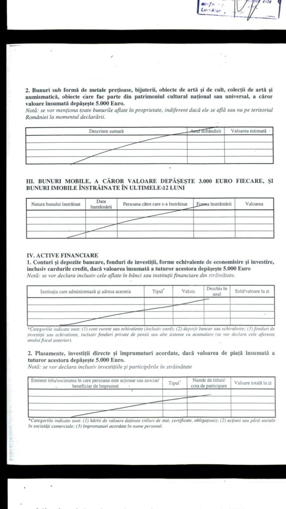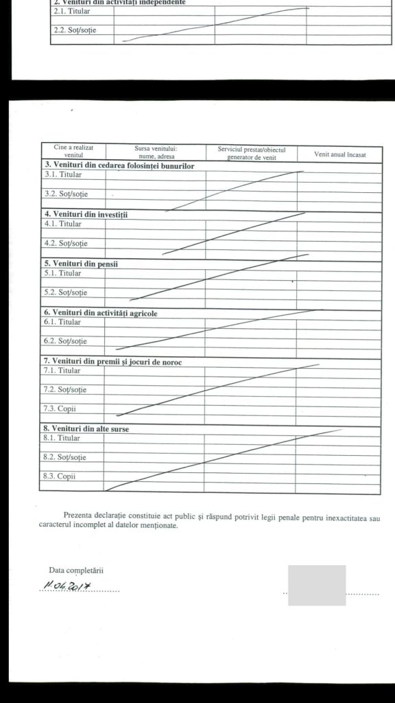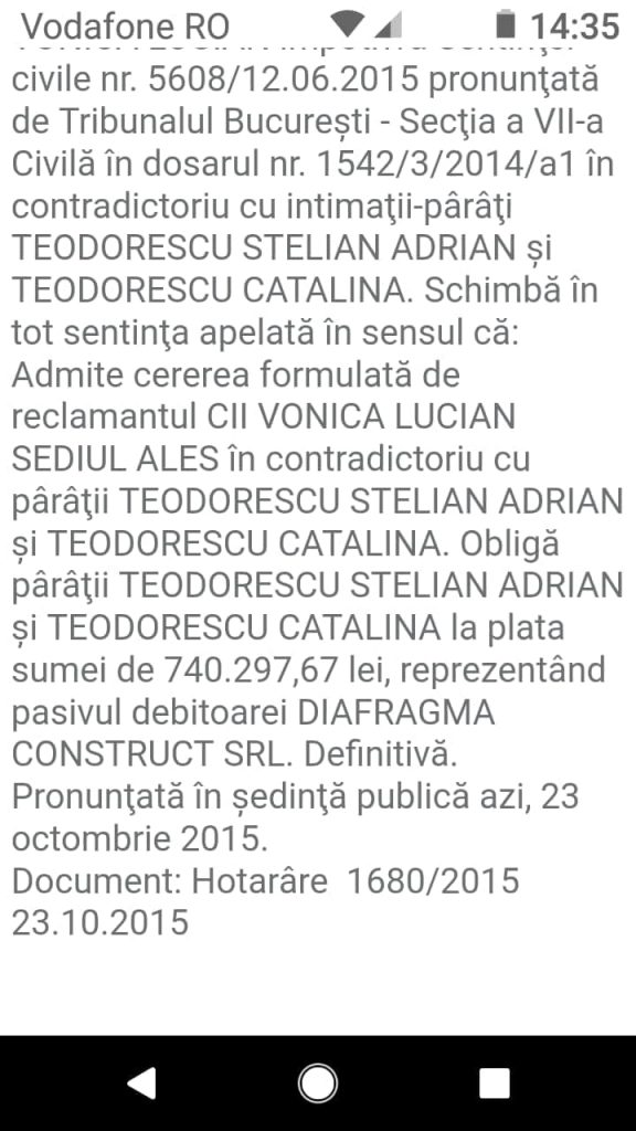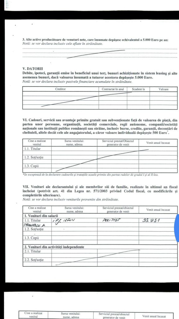 ASP Teodorescu Stelian Adrian, șeful de post al Postului de Poliție Branesti din cadrul IPJ Ilfov si-a completat declaratia de avere, anuală, conform legilor in vigoare, numai că…..”a uitat „probabil sa-si declare datoriile. Asa cum se poate observa din aceste declarații completate și semnate de catre acesta, domnul în cauză nu deține nimic, decât un autoturism ( desi locuiește într-o vilă, care ce sa vezi …”nu-i apartine”)…Cu toate că si-a construit casa prin firma sotiei sale ….SC TEODORESCU CONSTRUCT SRL…..în urmă cu 8-9 ani. La data de 23. 10. 2015 a fost emisă o hotărâre a Curții de Apel București prin care îi obligă pe cei doi soți la plata sumei 740287,67 lei reprezentând pasivul debitoarei „DIAFRAGMA CONSTRUCT „SRL,datorie ce nu se regăsește în declarația de avere a renumitului asa cum prevede legea.