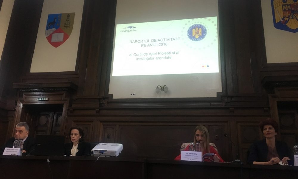 Curtea de Apel Ploiești și-a prezentat, în data de 18 februarie 2019, bilanțul activității pentru anul 2018, în prezența președintelui Consiliul Superior al Magistraturii, judecătorul Lia Savonea și a reprezentanților instanțelor arondate CA Ploiești, respectiv judecătoriile și tribunalele din județele Dâmbovița, Buzău și Prahova. Alături de magistrați, la eveniment au participat reprezentanți ai Inspectoratului Județean de Poliție Prahova, Jandarmeriei, Baroului Prahova și un număr important de invitați care au umplut sala Marea Unire din cadrul Palatului Culturii din Ploiești.