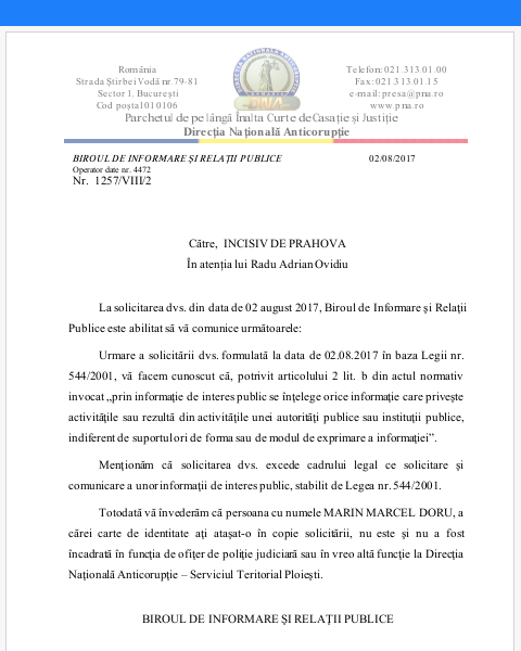 - c) – Chiar ale Legii nr. 182/2002 care, in 3 stipuleaza: „Nici o prevedere a prezentei legi nu va putea fi interpretată in sensul limitării accesului la informaţiile de interes public sau al ignorarii Constituţiei, a Declaraţiei Universale a Drepturilor Omului, a pactelor si a celorlalte tratate la care România este parte, referitoare la dreptul de a primi si răspândi informaţii.”