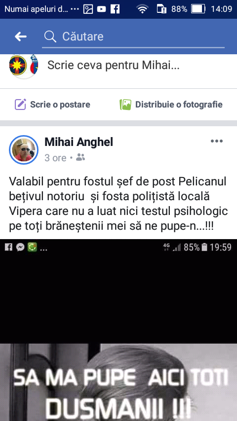Mai mult, precizam faptul ca, dupa aparitia dezvaluirilor din ziarul nostru, polițistul ASP Anghel Mihai din cadrul Postului de Poliție Branesti a inceput sa aiba un comportament deviant, de natura sexuala, in mod explicit pe pagina sa de socializare. (Alaturat va atasam pozele de pe pagina sa oficiala de Facebook).