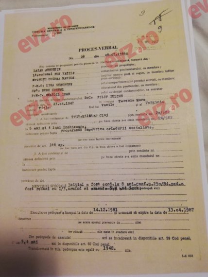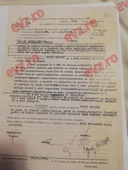Iulius Filip este eliberat din închisoare fix în urmă cu 32 de ani, în 13 aprilie 1987, după ispășirea INTEGRALĂ a pedepsei.
