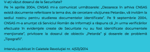 A predat SRI dosarul ,,Petarda” la CNSAS și răspunsul comunicat în urma solicitării din 13 noiembrie 1988 a colonelului Goran, cel care a propus reînregistrarea informatorului Miron? NU!.